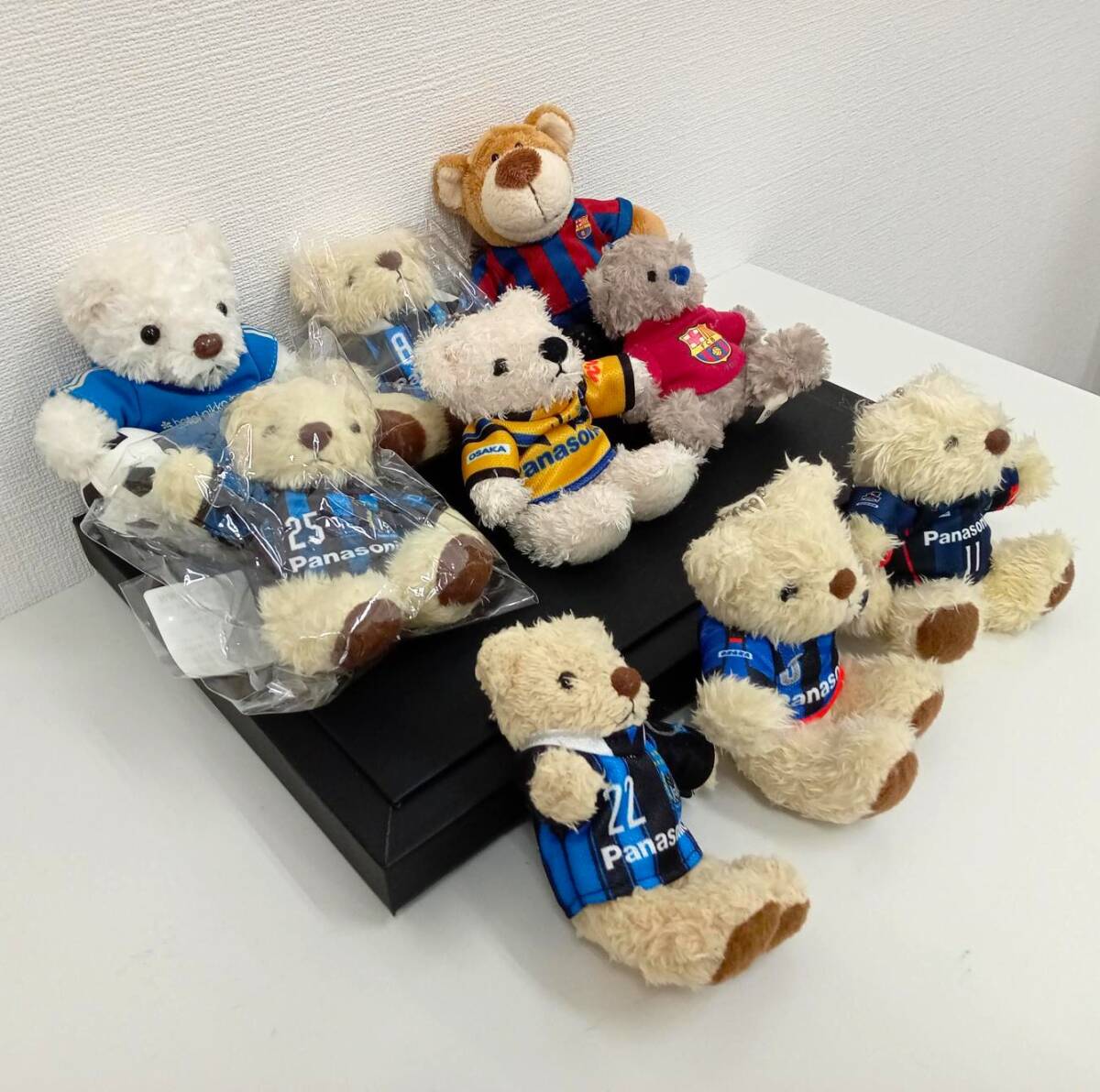 | #679【ユニホームベア/サッカー/バルセロナ/ガンバ大阪/まとめ9点/現状品】ユニホームベア キーホルダー 置物 サッカーチーム 保管品 中古品 | ||