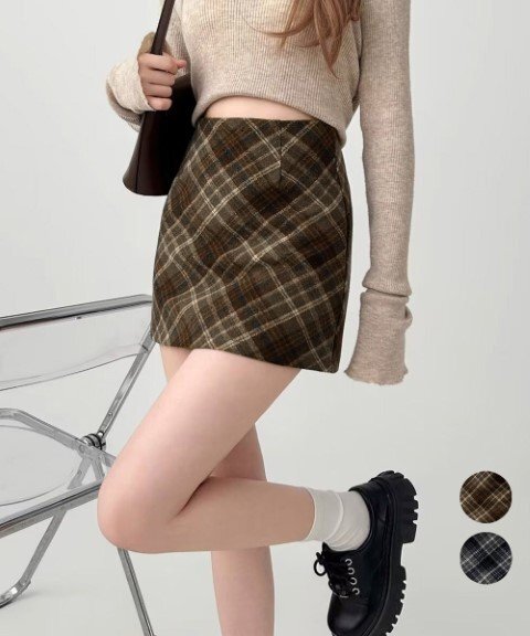 レトロなチェック柄が魅力のウールライクタイトミニスカートです。