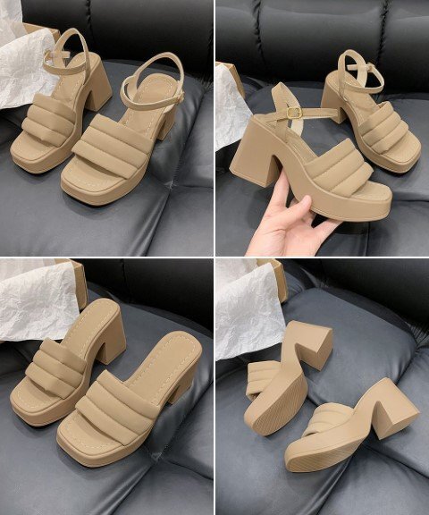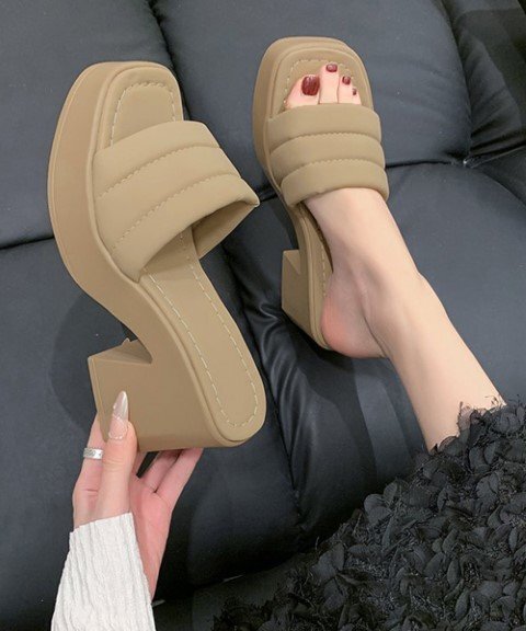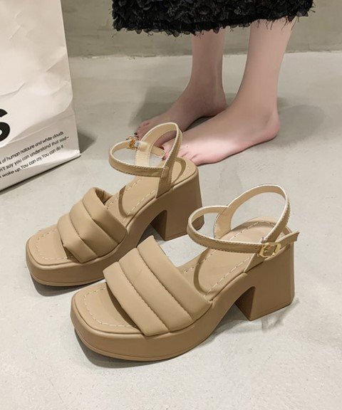カジュアルはもちろん、きれいめなコーディネートにも馴染むシンプルなスクエアトゥハイヒールサンダル