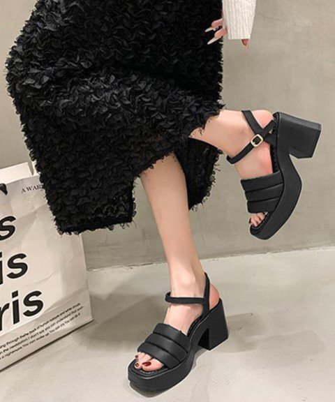 美脚 疲れないくつ 太ヒールサンダル黒 歩きやすい靴お洒落