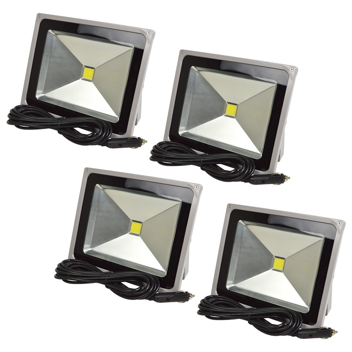『※シガー電源 DC12V/24V』 超便利! 防水IP65 アルミ製 LED 投光器 50W 4個セット ホワイト 白発光 集魚灯 デッキライト 船
