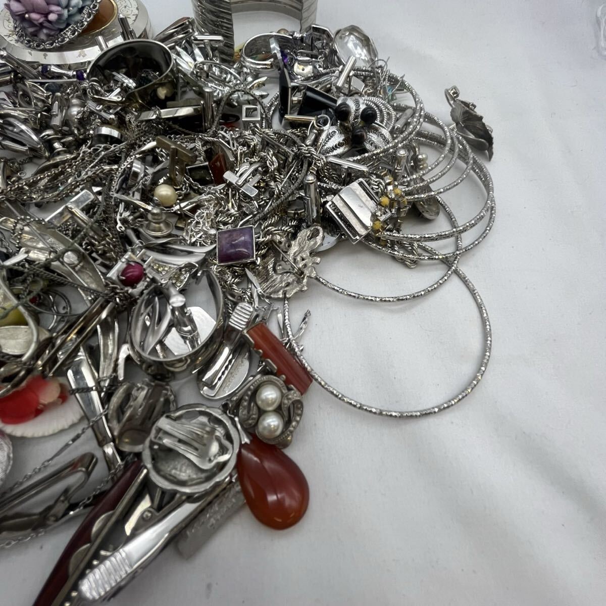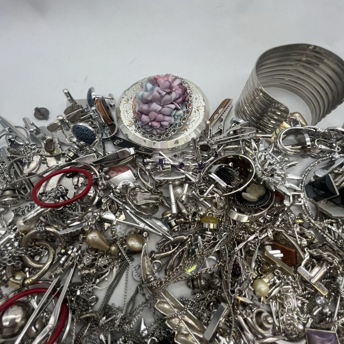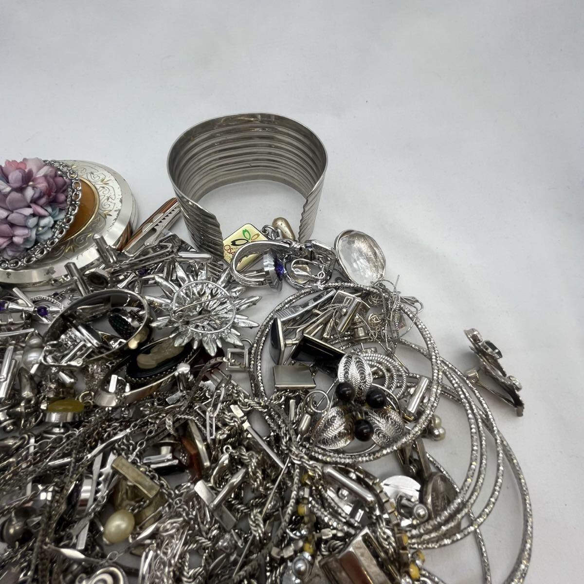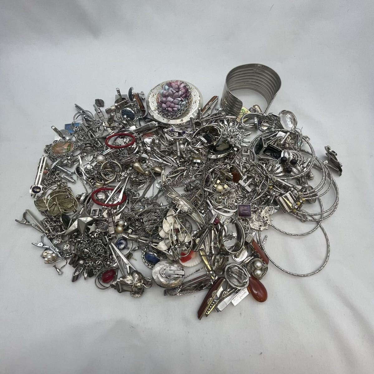 【X-89】 シルバーカラー イミテーション アクセサリー まとめ 総重量約1.2Kg ネックレス イヤリング ブローチ カフス タイピン 等