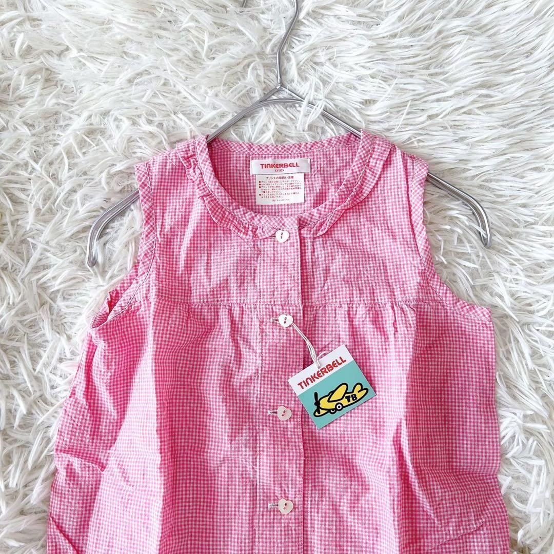 新品 《ティンカーベル》 TINKERBELL (110) ギンガムチェックシャツ ハートボタン 春夏
