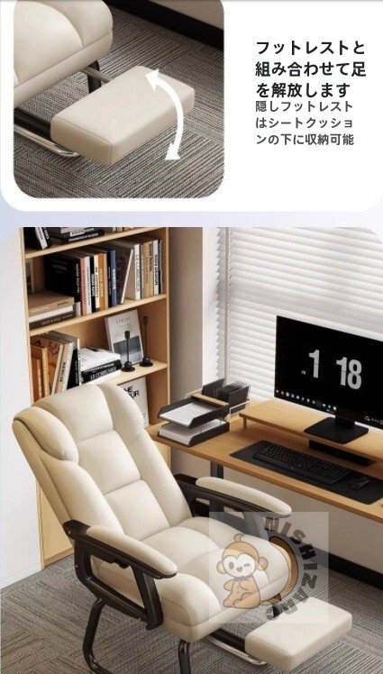 快適リクライニングチェア - 長時間のデスクワークにも疲れない ホームオフィスや書斎に最適なデスクチェア