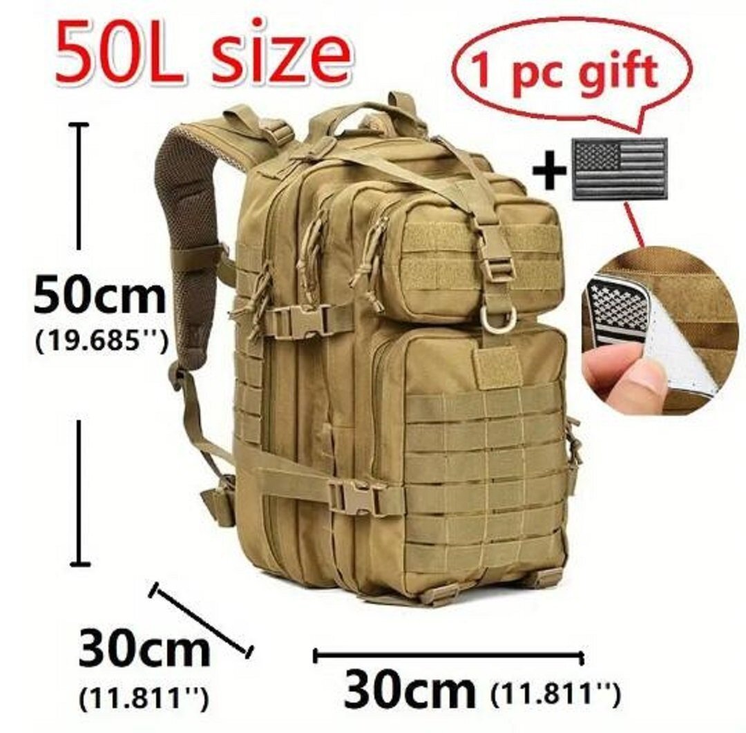 アウトドア用 超高品質 大型 50L バックパック リュックサックミリタリー 大容量 多機能防水サバゲー装備キャンプ野外登山 30×30×50cm 緑