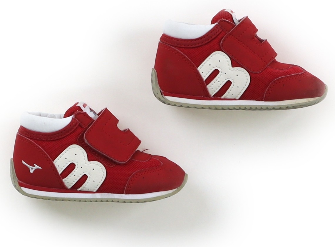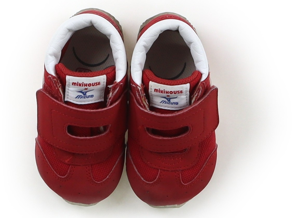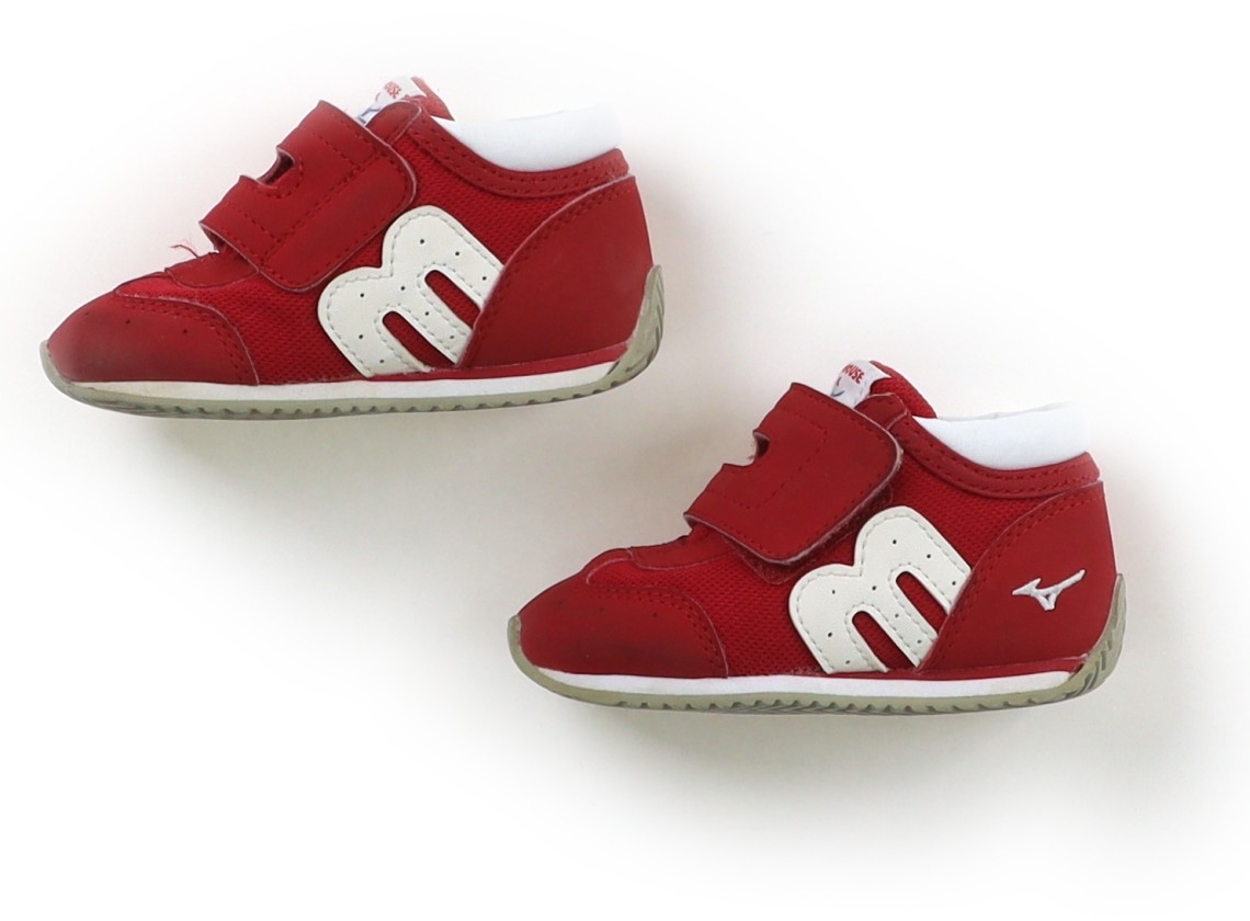 実際のサイズ表記は13cm。ミズノとのコラボ商品。マジックテープでの着脱。靴底の溝に小石の詰まりがあります。全体的に使用感がありますが、特に目立つ汚れはなくまだお使い頂けそうです。