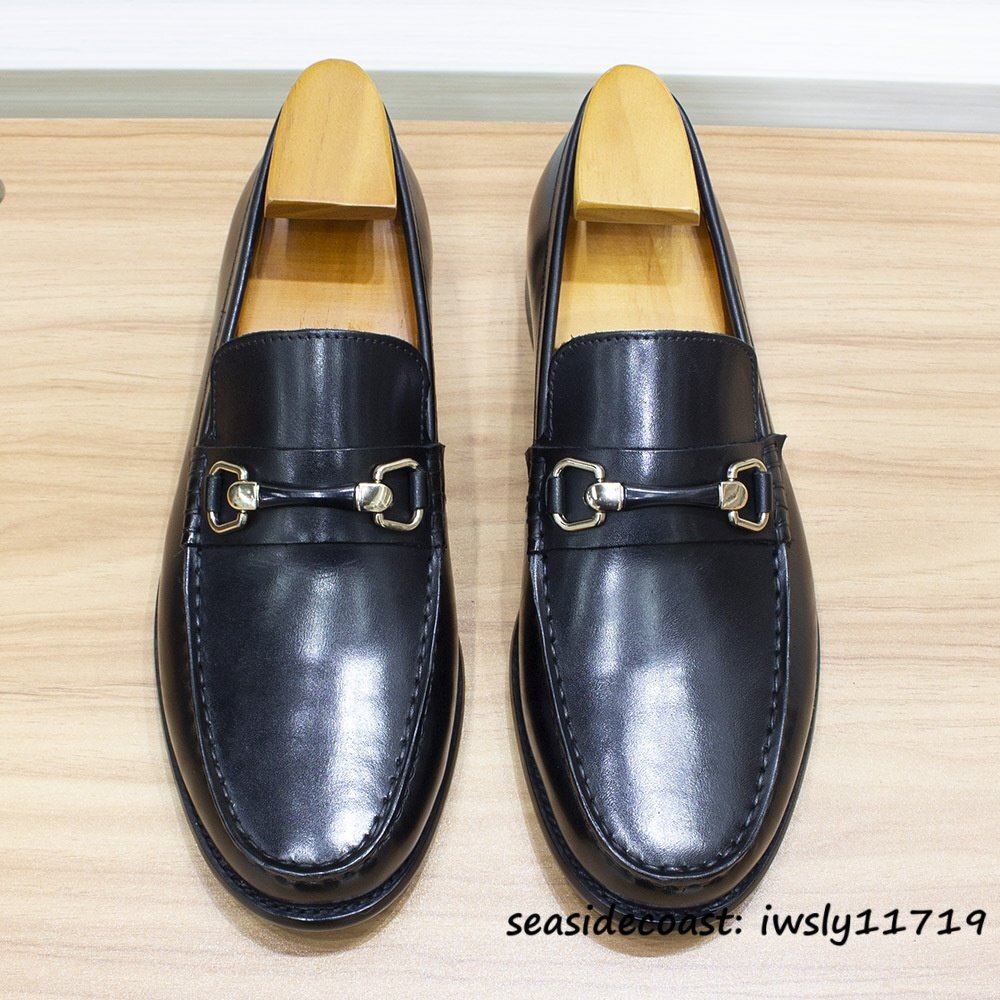 最高級★定価9万 本革 レザーシューズ 新品 ビジネスシューズ メンズ 職人手塗仕上げ 超希少 ローファー 紳士靴 牛革 革靴 ブラック 27.0cm