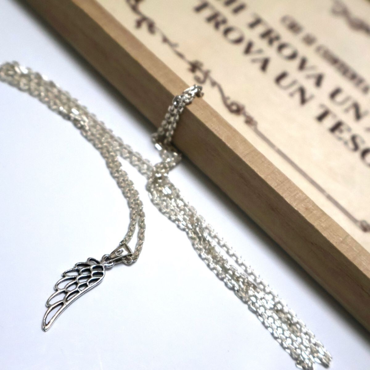 優雅な小さなシルバーの羽が、天使のような軽やかさを感じさせるネックレストップ。このアクセサリーは自由と守護を象徴し、あなたの日常に優雅さをもたらします。羽は夢、自由、そして高いスピリットを表しています。身につけることで、あなたの心は常に飛翔しているような感覚に包まれ、日々の喧騒を忘れてしまうことでしょう。