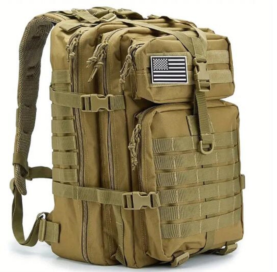 アウトドア用 超高品質 大型 50L バックパック リュックサックミリタリー大容量多機能防水サバゲー装備キャンプ野外 30×30×50cm カーキ