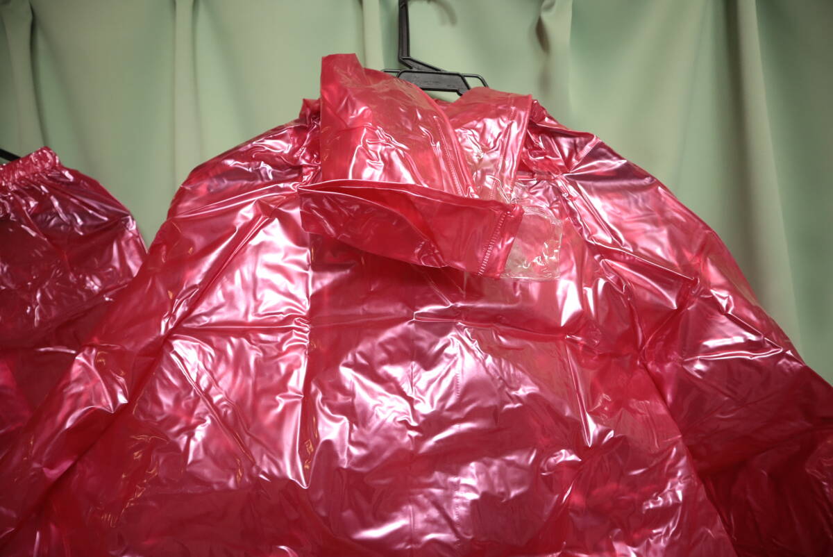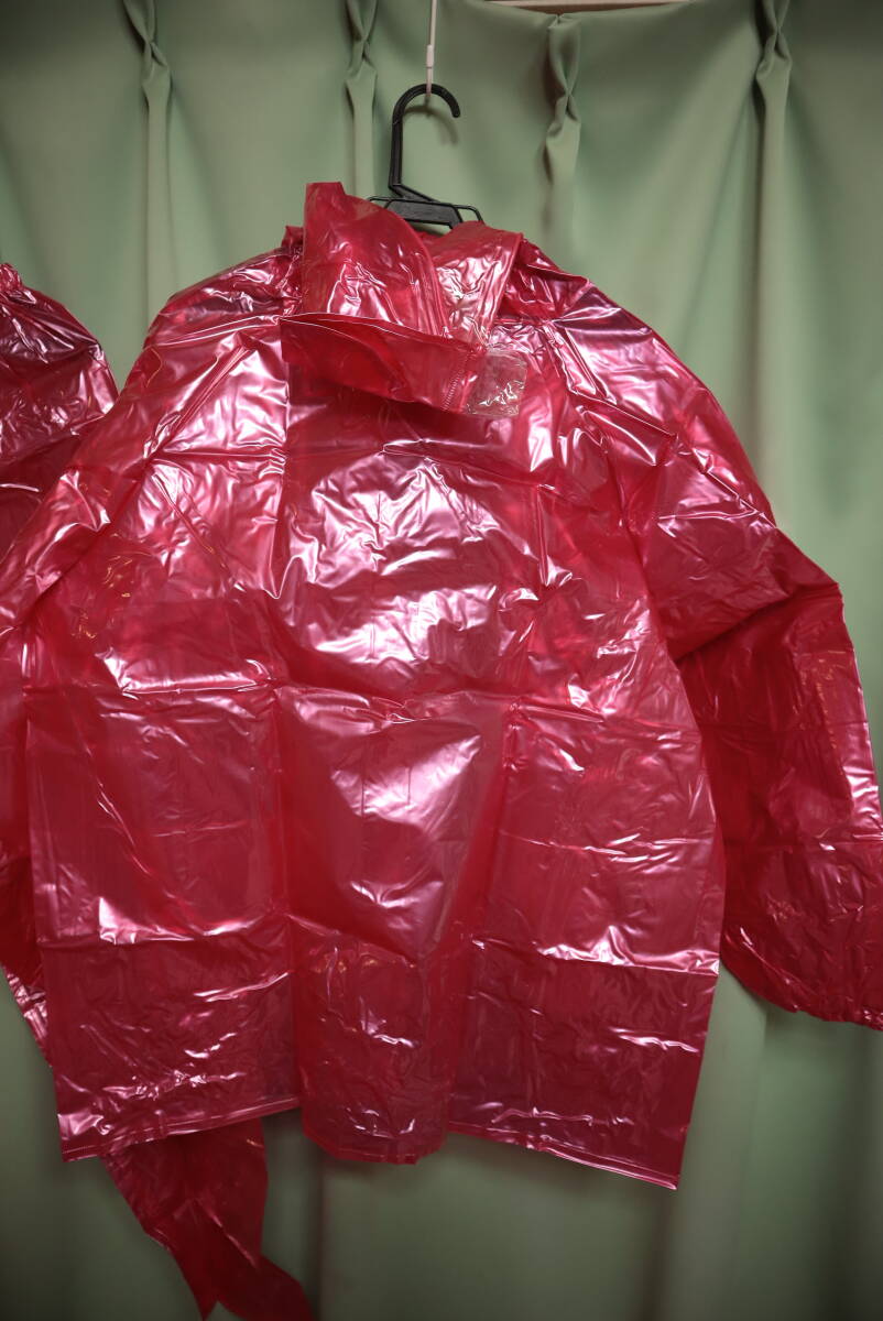 | ☆レトロ 光沢ビニールレインコート合羽上下 レッド フリー☆ |