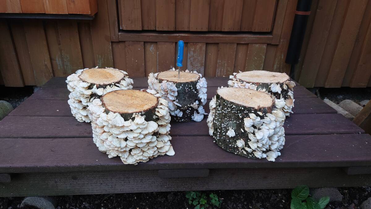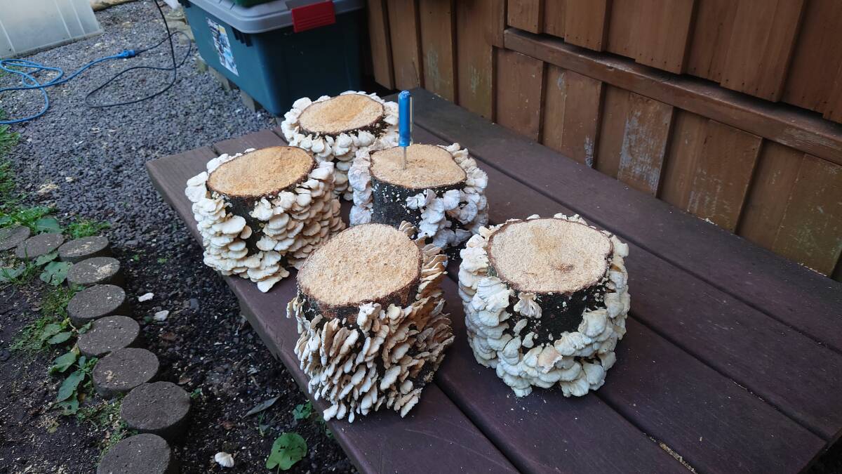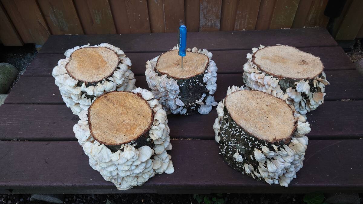 【樹種 ブナ・ 長さ 約14センチ・ 直径 15センチ前後・菌種 シロハカワラタケと思われます・5本セット】