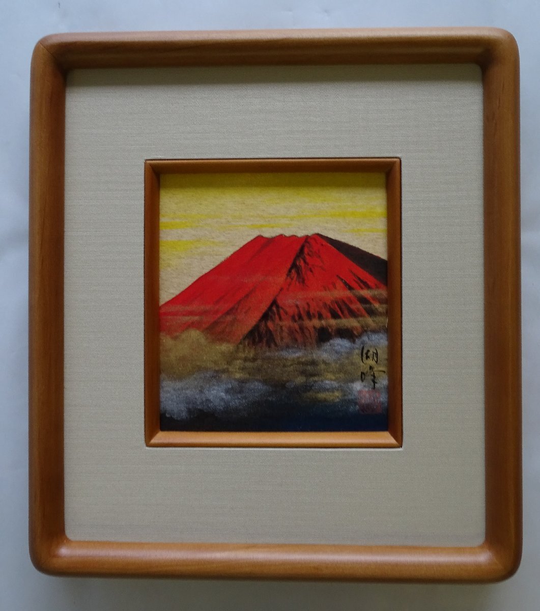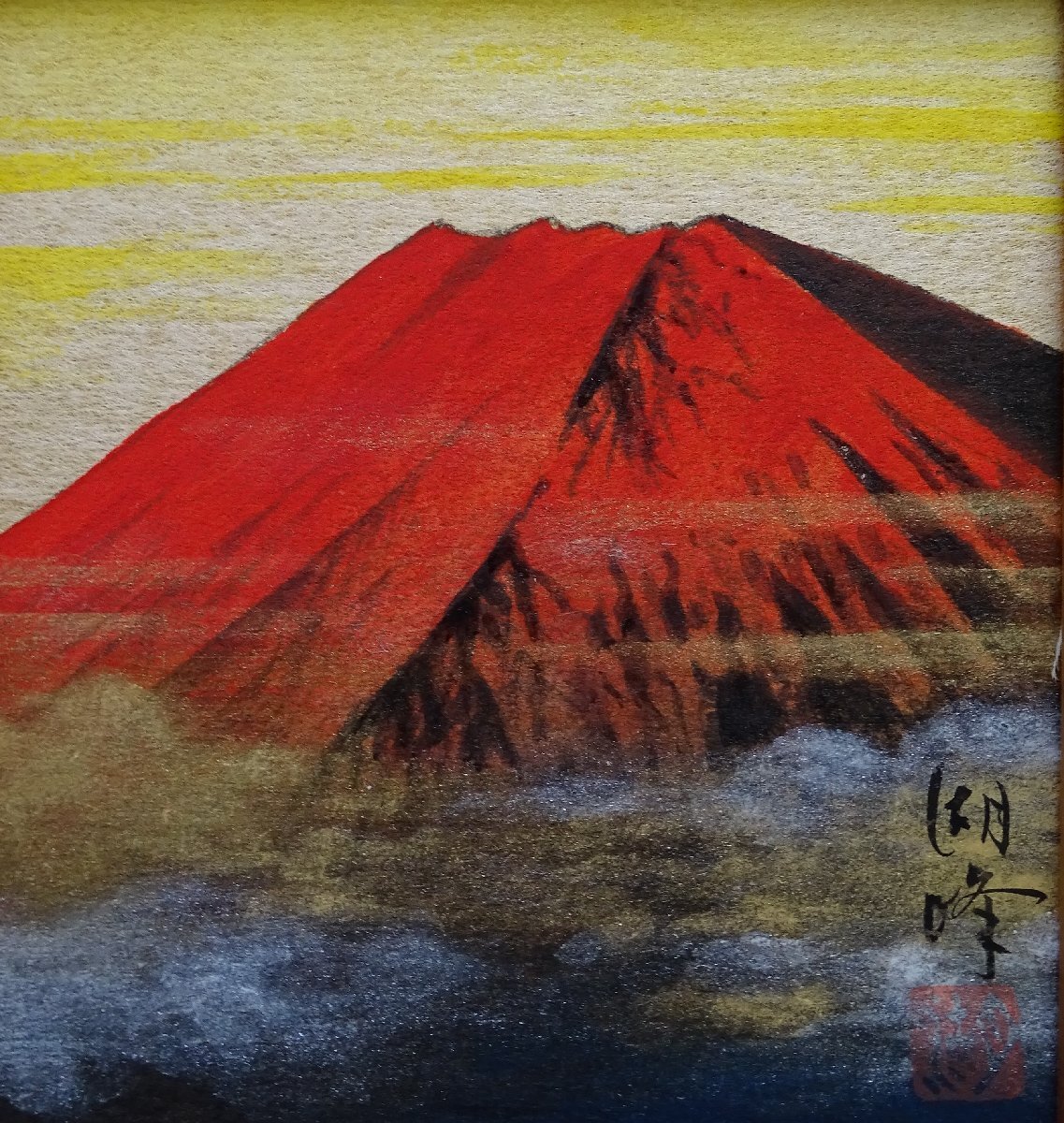 ・作者: 藤原湖峰 ・画題: 赤富士 ・技法: 色紙絵(手描き) ・NO-R6-4-12.5