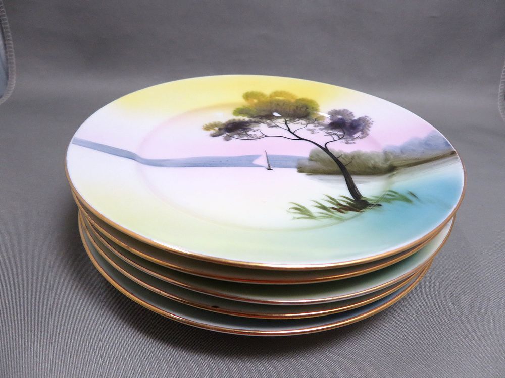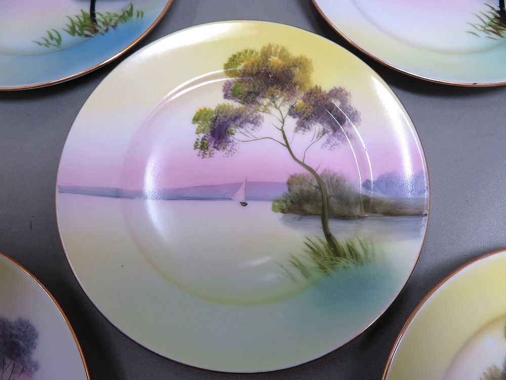 | §五城§オールドノリタケ「M-JAPAN」印・風景ケーキ皿(大正七年頃)5枚・輸出向・収集家収集品 | |