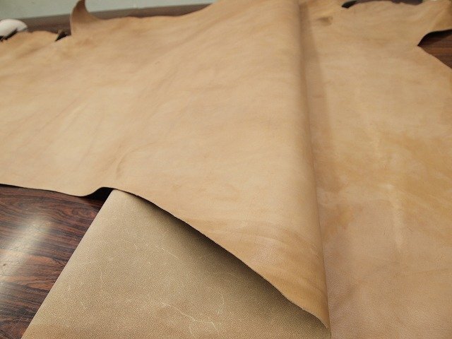 Y-25090128 栃木レザー 牛・タンニン ヌメ下地 200ds程度 半裁一部カット 1.0mm ナチュラル 1枚
