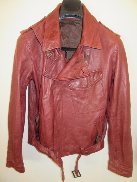 SABATINOのレザーバイカーズ ジャケット クラシカルな軍のライダースコートをショート丈にしたマニア心をくすぐるジャケットです。