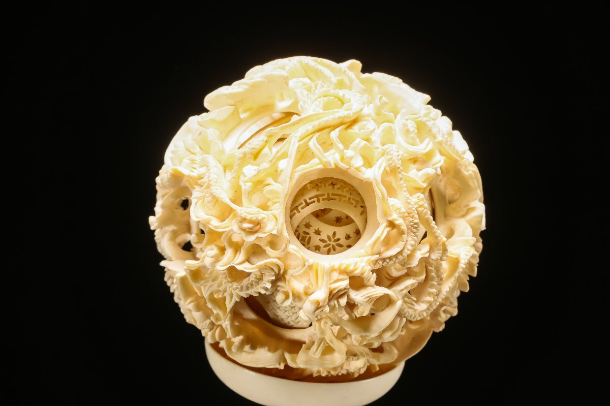 【雲錦】某有名オークション買入 時代物 特殊白材 巨大天球 共箱 骨董品 古美術Z-75