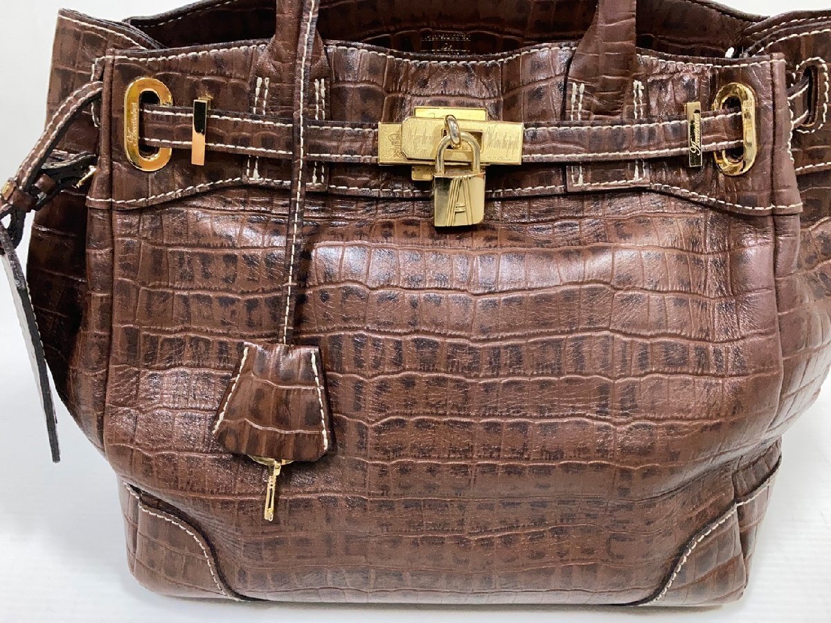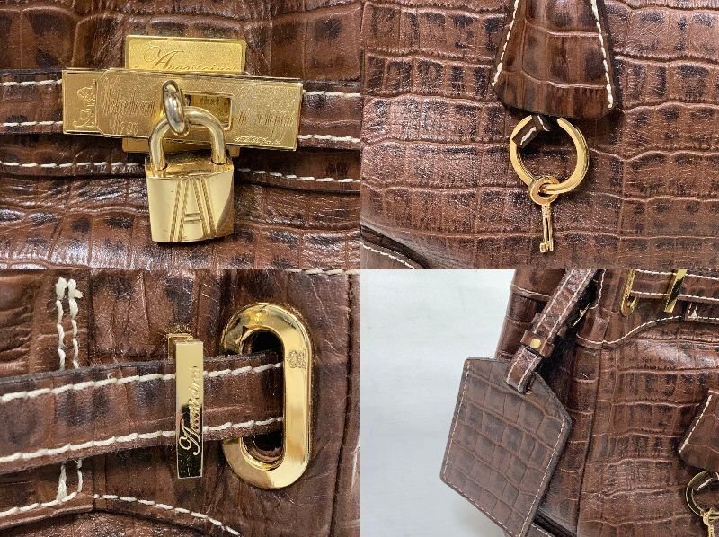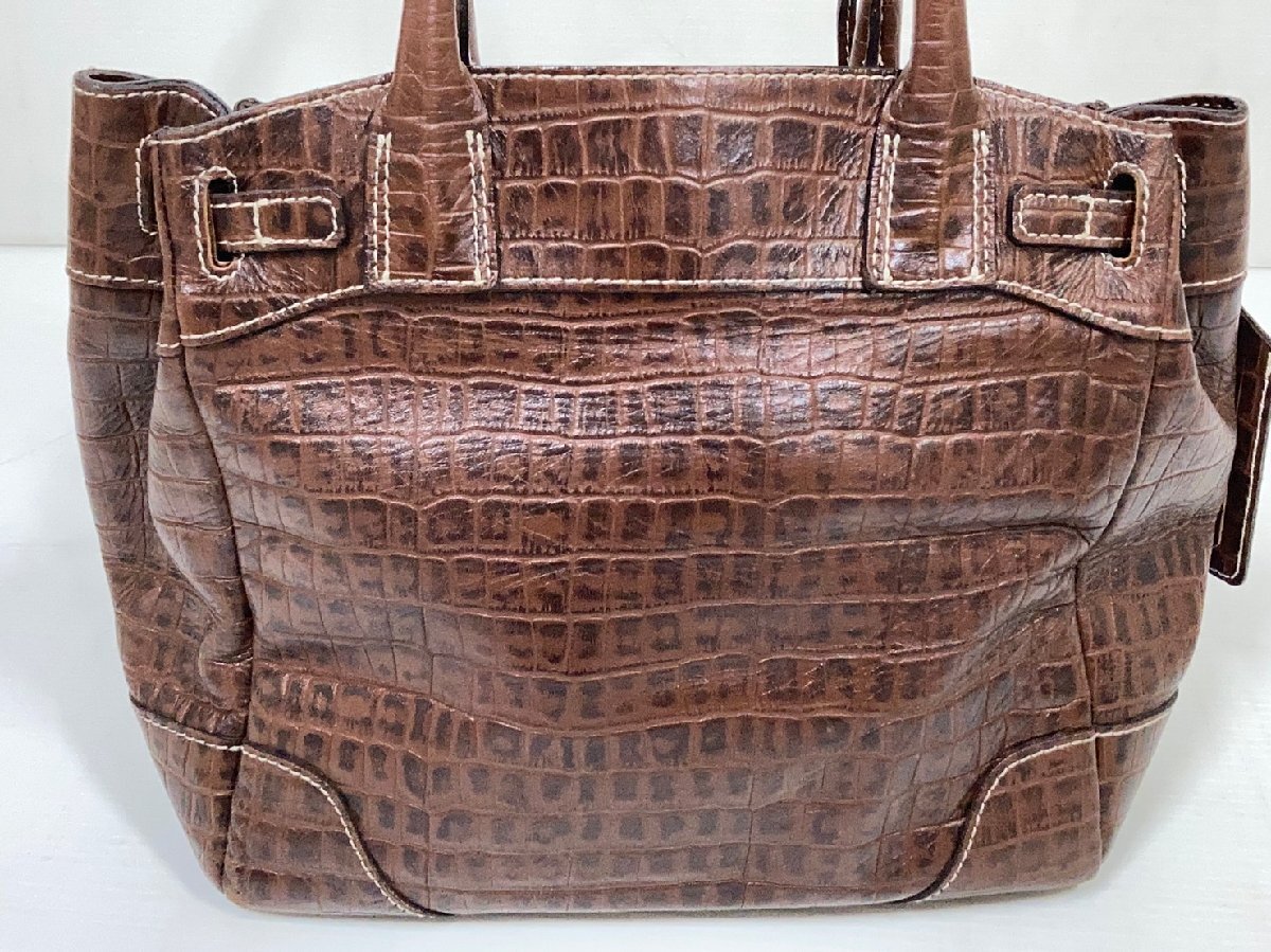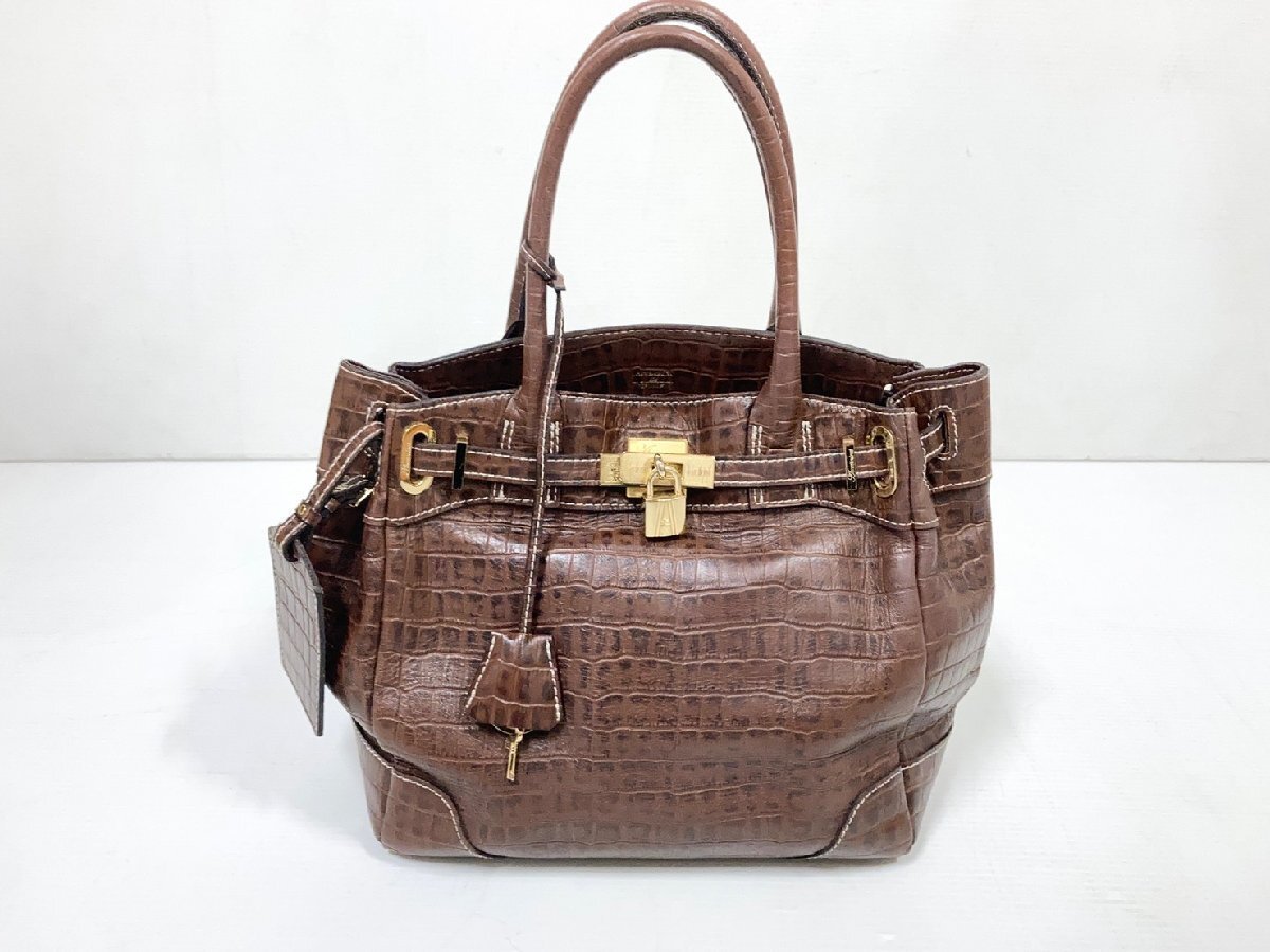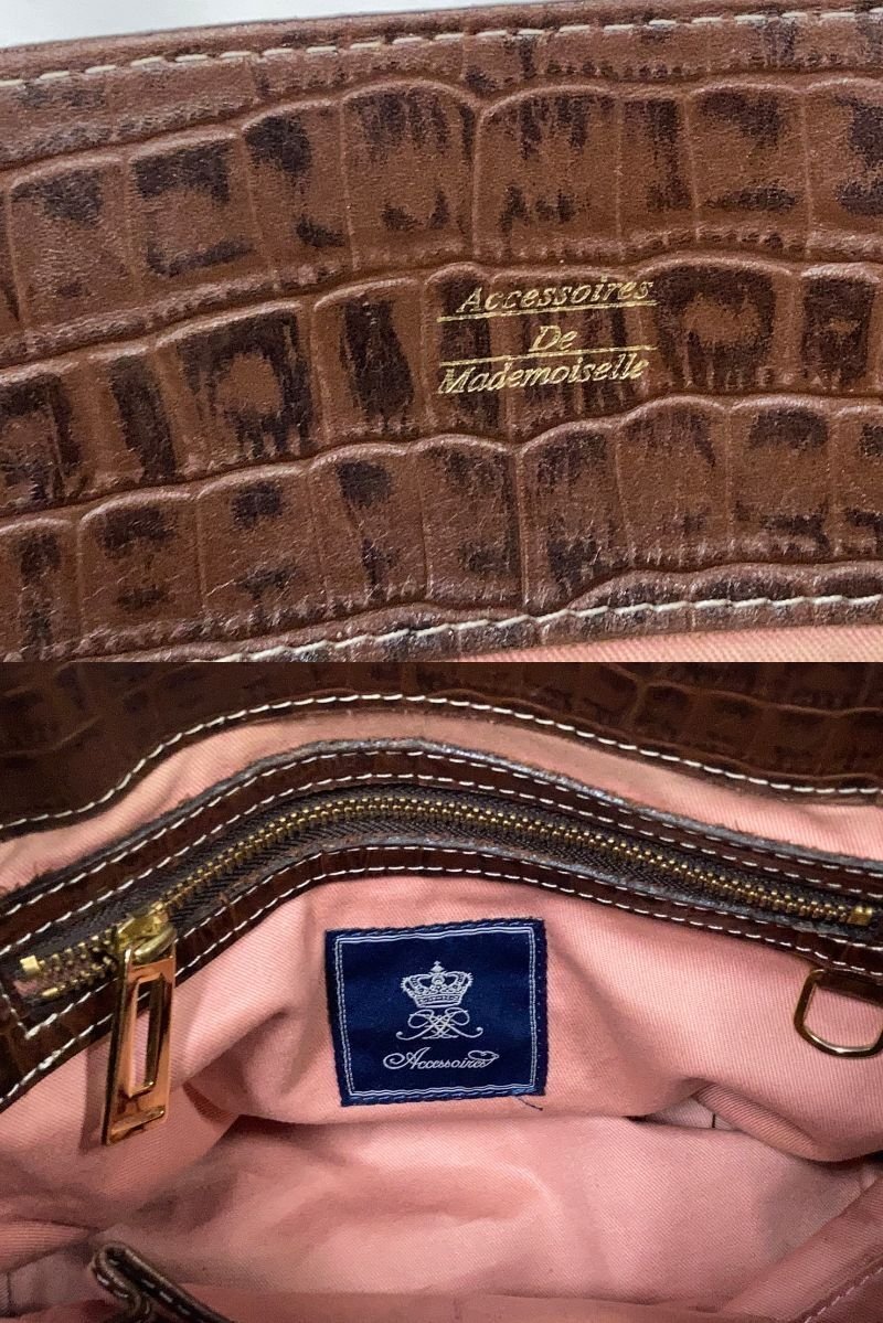 ADMJ[アクセソワ]クロコ型押し ハンドバッグ ブラウン レザー Accessoires De Mademoiselle 中古品