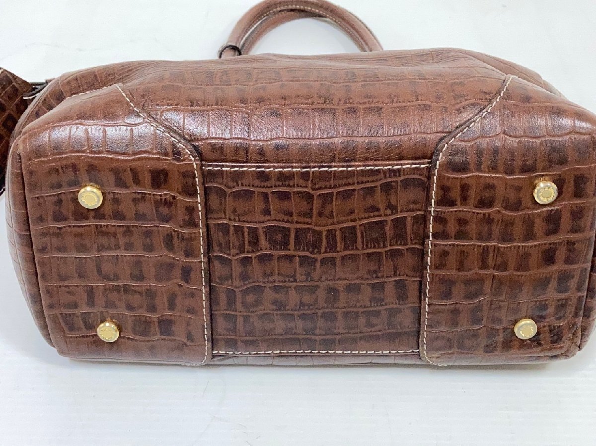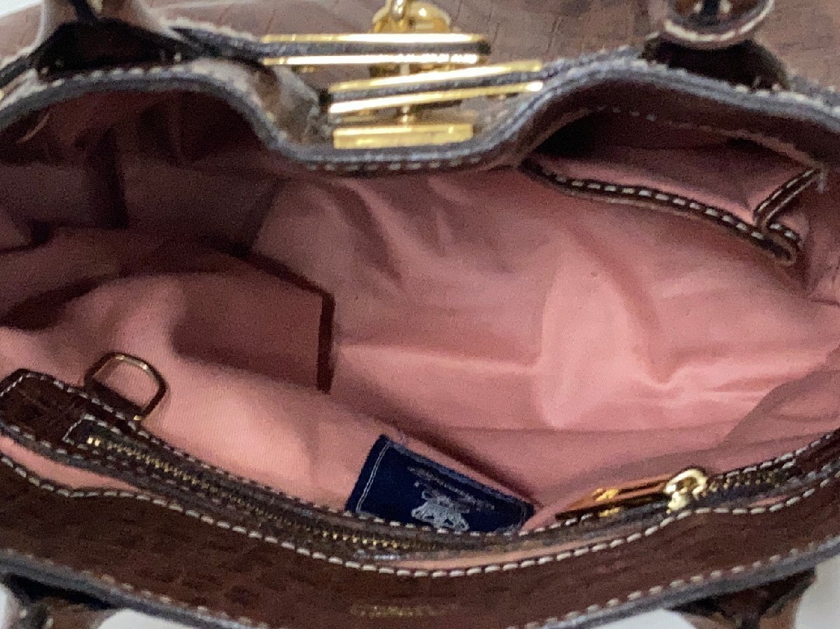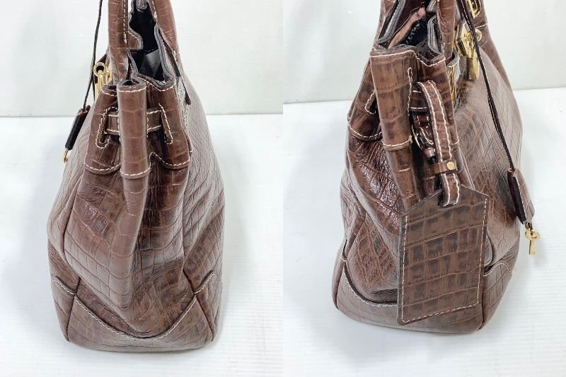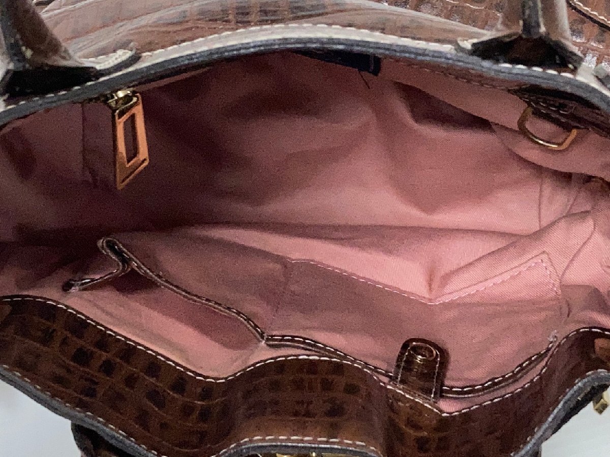 ADMJ[アクセソワ]クロコ型押し ハンドバッグ ブラウン レザー Accessoires De Mademoiselle 中古品