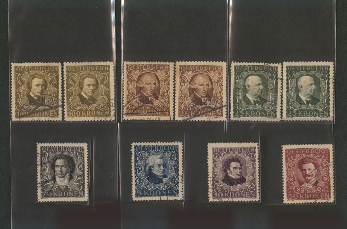 外国切手 オーストリア 1922年作曲家7種(B50-6) 目打違い注文消 使用済10種 使用済