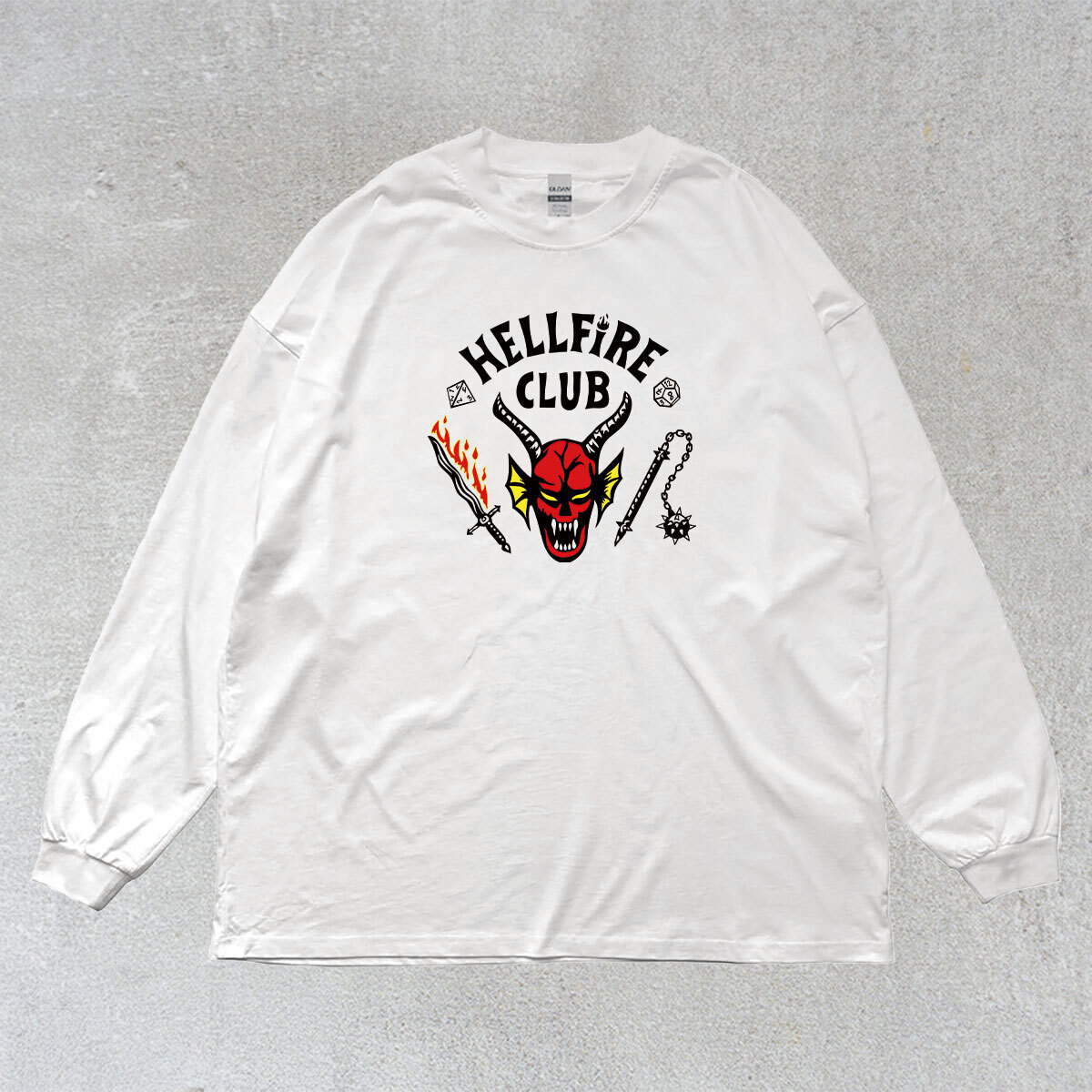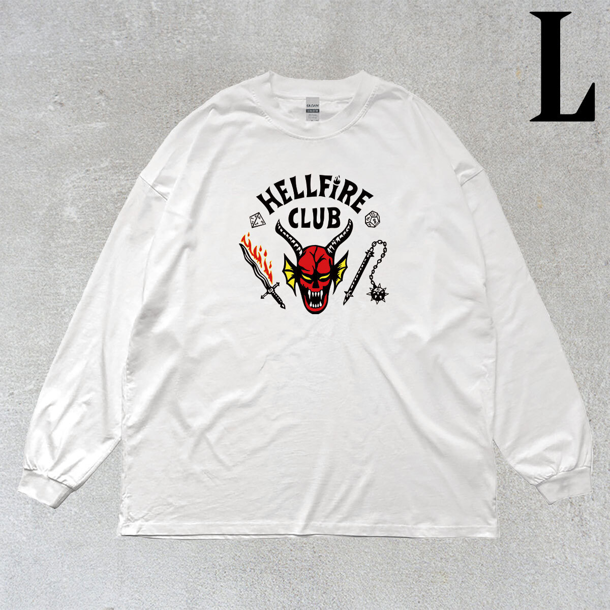 ヘルファイア クラブ Hellfire Club ストレンジャーシングス Stranger Things イラストプリント リブ付き 長袖 Tシャツ ロンT 6oz 綿100% L