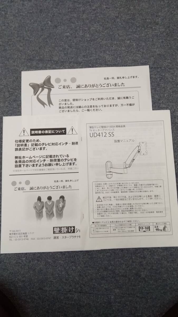 【TN-2530】 中古品/㈱スタープラチナ/TVモニター 壁掛け金具 セッターアドバンス/UD412 SS/ 3~32インチ対応 インテリア/AVボード/壁面タイプ/一部パーツ無 【HK】 |