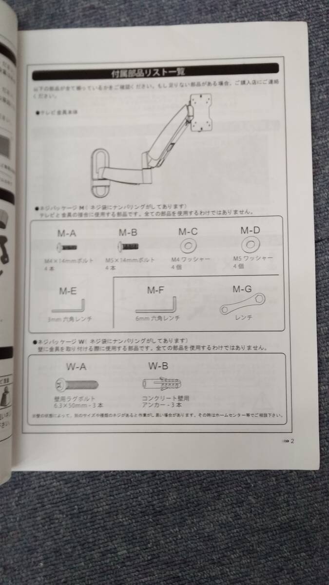 *商品に興味をもっていただき、ありがとうございます。 *㈱スタープラチナ TVモニター 壁掛け金具 セッターアドバンス UD412 SSをお譲りいたします。 *中古品 *委託品のため詳細、使用、保管期間などは不明で 専門的なことはわかりかねます。 *商品解説 *㈱スタープラチナ TVモニター 壁掛け金具 セッターアドバンス UD412 SSは テレビ/モニター用の関節式壁掛けです。 *取り付け前提条件 テレビ背面に壁掛け用のネジが開いていて、 テレビ背面がフラットである事。 *テレビ背面対応ネジ穴幅 テレビ背面にある壁掛け用ネジ穴の 縦横ネジ幅 75×75mm~100×100mm VESA規格 *商品名: TVモニター 壁掛け金具 セッターアドバンス *型番: UD412SS *付属品: 設置マニュアル、用紙類 M-A.M-B.M-C.M-E.M-F.M-G.W-A.W-B 付属品:M-Dは付いておりません。 ※設置マニュアルの付属部品リスト一覧をご覧ください。 *付属品は未開封です。 *テレビと金具の接合に使用する部品です。 全ての部品をしようするわけではありません。 *画像に写っているものが全てです。 ぜひご検討ください。 *知識がない為、落札後のサポートは一切出来かねます。 *委託品で専門知識がないため不足がある場合がございます。 ご了承ください。 *詳しくお知りになりたい方は㈱スタープラチナ TVモニター 壁掛け金具 セッターアドバンスで お手数をおかけしますがお調べくださいますよう お願い致します。 *他にもたくさんの商品を出品しております。 是非、ご覧になってください。 *目立った傷や汚れは、ないと見受けられます。 マニュアルは折れ目がある箇所がありますが、 読んでいただくには問題はございません。 箱はへこみ、汚れ、すり傷があります。 *状態は画像で必ずご確認、ご判断して頂き、 何の保証もございませんので、状態が気になる方は、 購入をお控えください。 *現状渡しとなります。 *大変オススメです。ぜひともご検討くださいませ。 *ご興味お有りの方々、よろしくお願い致します。 *商品の状態は気を付けて見ておりますが見落としなどある 場合があるかもしれませんがご了承下さい。 *保管ダメージはご理解ください。 *中古品にご理解のほどよろしくお願いいたします。 *完璧を求める方はご購入をご遠慮下さい。 *ノークレーム・ノーリターンで宜しくお願いいたします。 *上記の写真にてご確認をお願いいたします。 *専門的な知識はございませんので細かい質問には お答えできません。ご了承ください。 *長期保管してありましたので多少の傷みがある場合がございます のでご理解頂いた上でのご購入をお願い致します。 ※委託品のため詳細が分からない商品もございます。 ※商品説明に明記しておりますが、使用感がある場合がございます。 ※委託品・長期保管品のため、新品・未開封品であっても微細なキズや汚れがある場合がございます。 ※家電は動作確認済みですが全ての機能の長時間動作確認はしておりません。 ※工具や調理器具の実際の作業、調理等での確認はしておりません。 ※商品の写真はなるべく実物に近いものを選んでいますが、PC環境により映り具合や色合いなど見え方が異なる場合もございます。 ※現状でのお渡しのため、商品の状態などの理由による返品、ご返金には応じかねますのでご了承ください。 ※商品が小さな部品、電池等を含む場合は誤飲防止のため、小さなお子様の手の届かないところでのご使用及び保管をお願いいたします。 気になることがありましたらお気軽にご質問ください。 | ||||||||