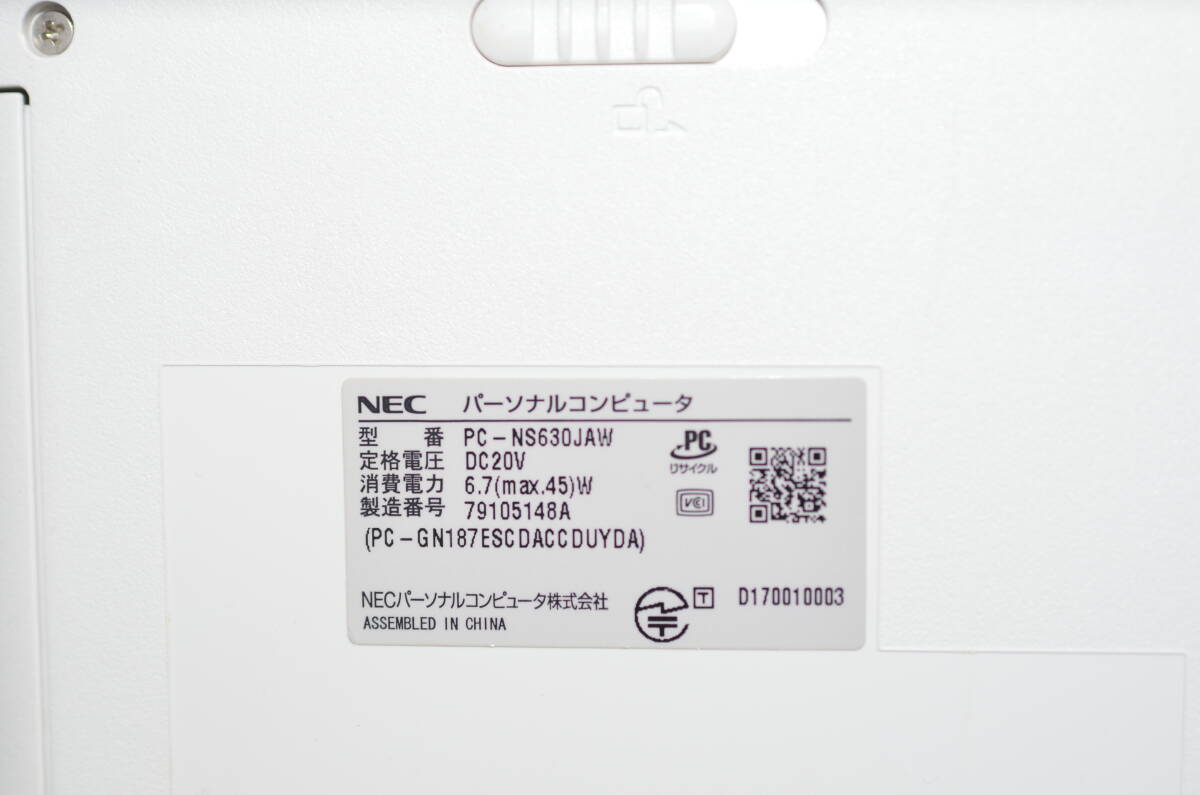 中古ノートパソコン NEC NS650/J 爆速SSD512GB交換済、メモリ8GB 、DVDマルチ搭載