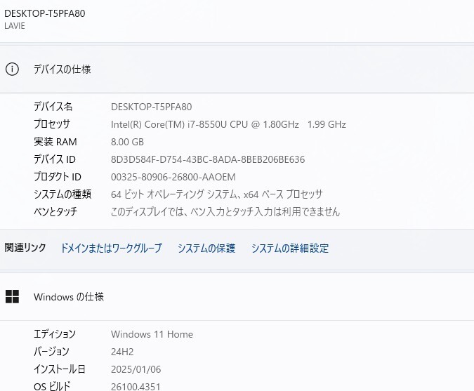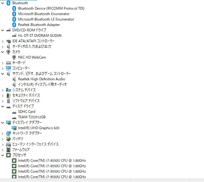 ■CPU:インテル core i7 8550U (@1.80GHz)