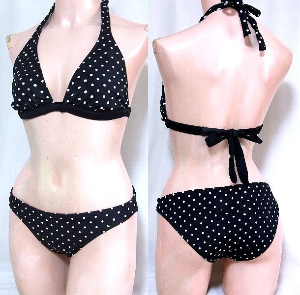 ★☆白水玉入り黒ホルターネックビキニ水着☆★