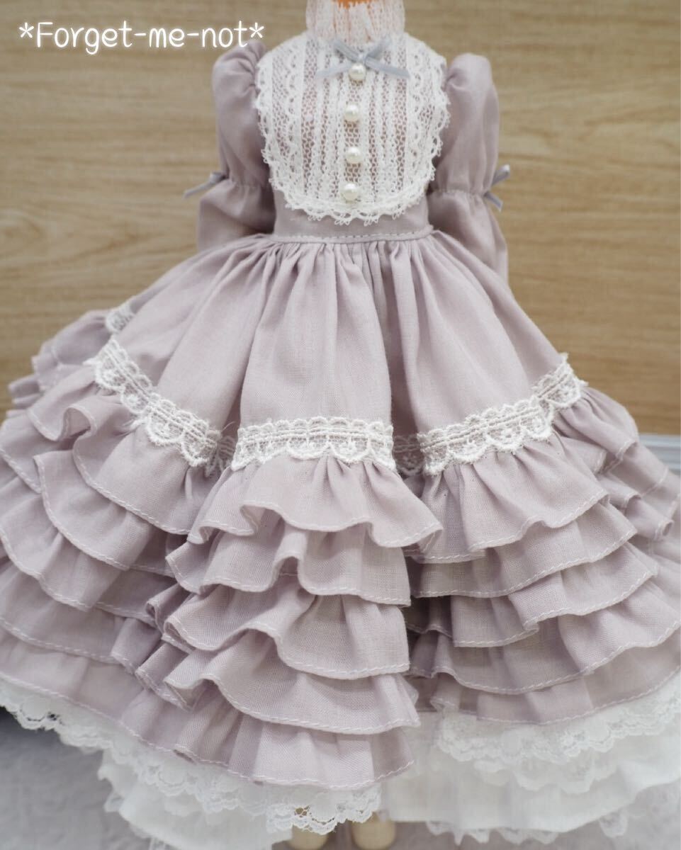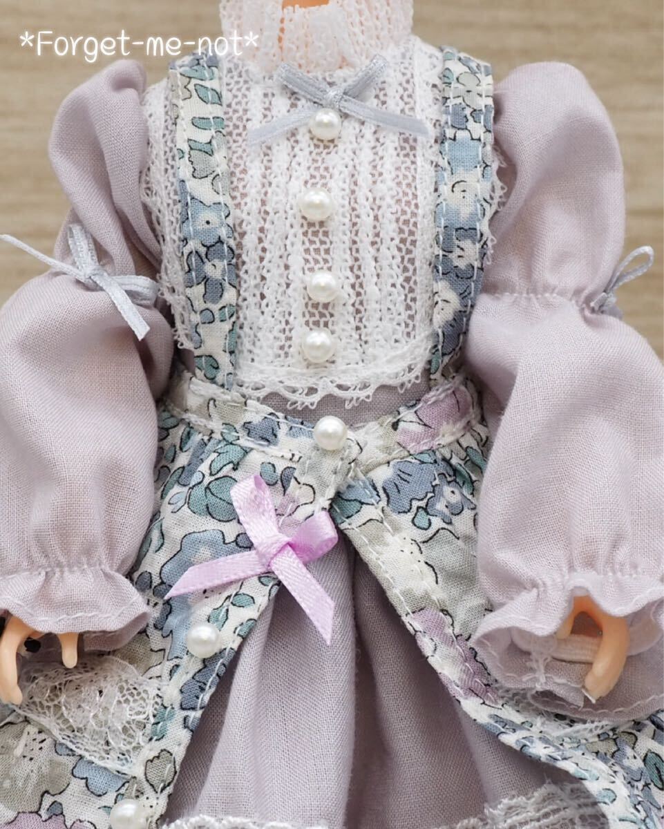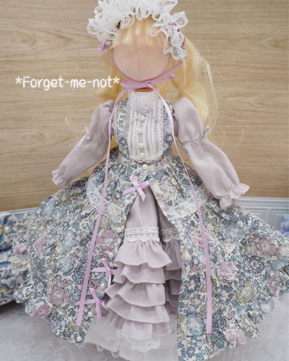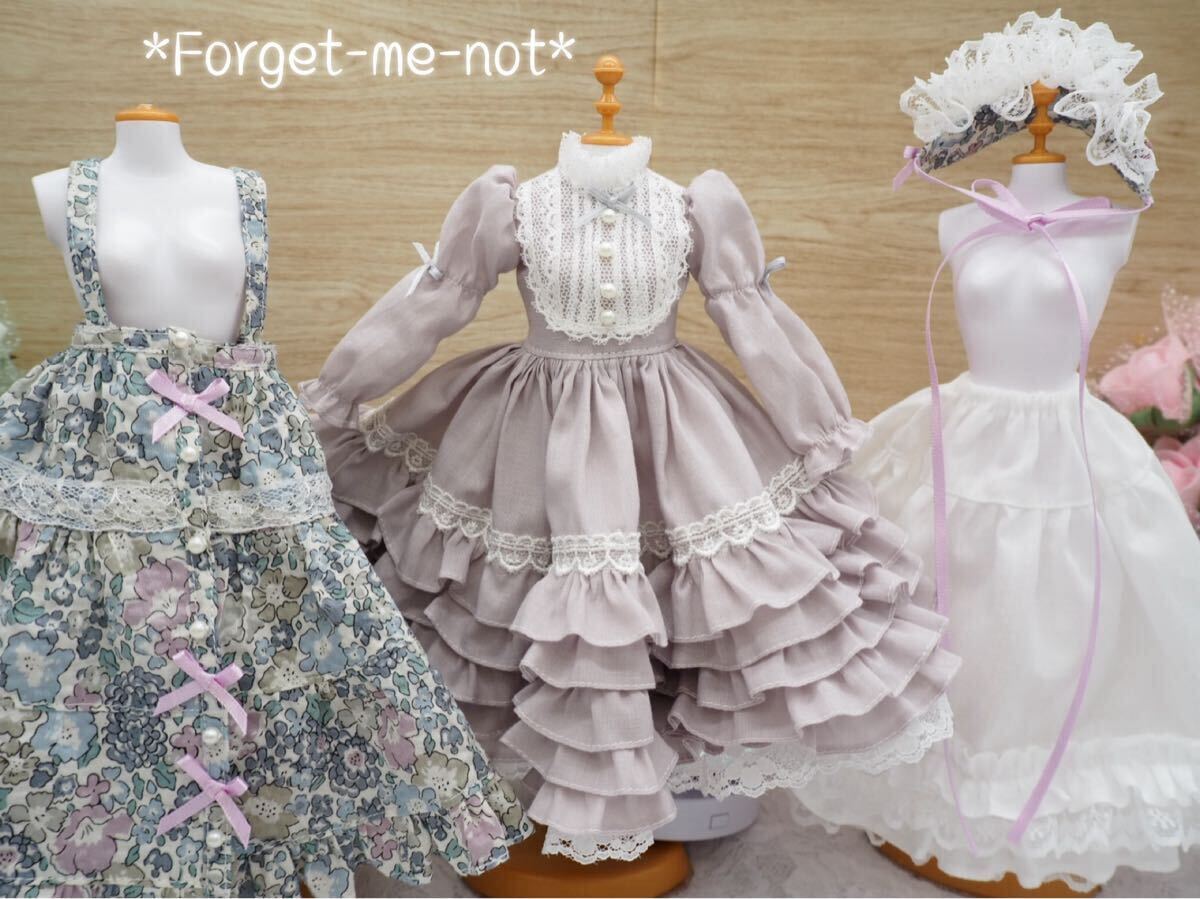 | たくさんある中からご覧いただきましてありがとうございます!トルソー着画のため、どうしてもスカートや袖の丈感等が分かりづらいかと思います。ご不便をおかけ致しますがどうぞ宜しくお願い致します 27センチドール、デフォルトボディに合わせて作りましたドレスのセットになります。(o^^o) 『~すみれ色の歌~』 静かな洋館に響く、小さな歌声。 それは、すみれ色のドレスをまとうお姫様の夢。 フリルとレースを重ねたドレスは、まるで秘密のブーケ。 花柄のエプロンを羽織れば、庭園の散歩へ。 純白のアンダースカートは、どんな物語にもなれる魔法。 優しさと可憐さをぎゅっと詰め込んだ、Forget-me-notだけの特別な1着。 小さな物語を奏でる、大切なアウトフィットセットです。 貴方の大切なドールにぜひどうぞ。 ★ワンピース、後ろ半開マジックテープ留め ★オーバーワンピース、前全開スナップ留め。リバティのリップル布で作りました。ちりめんのように布がぽこぽこしています。 ★アンダースカート、ウエストゴム。 ★ヘッドドレス、リボンを結んでください。リバティのリップル布 以上の4点セットになります |