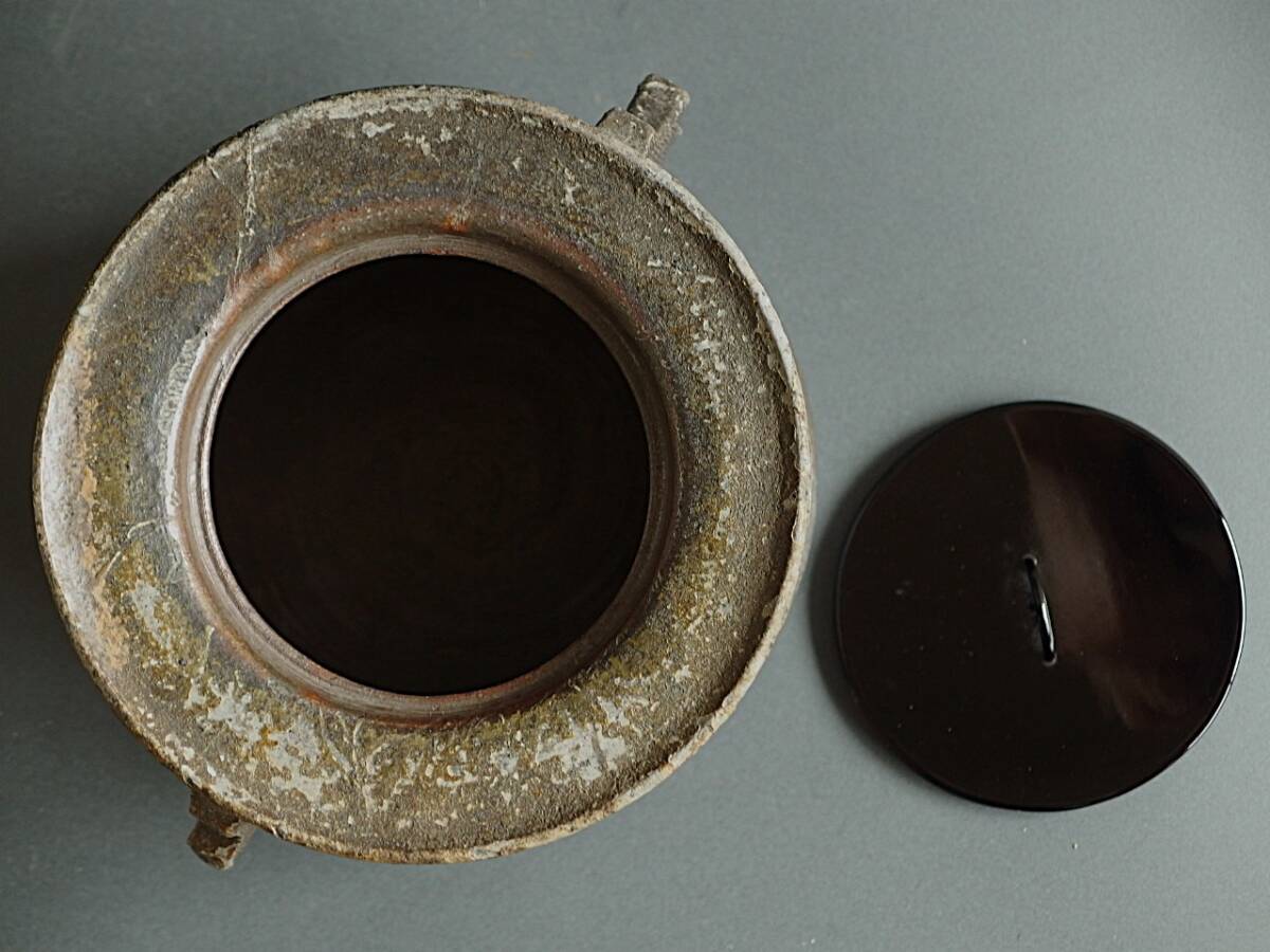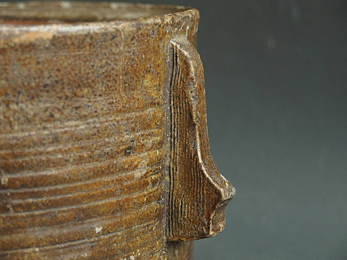 ◎野遊7 仕立て良い優品の古備前双耳水指 万治三年(1660)箱書有り 桃山~江戸時代初期 茶道 水指 備前焼