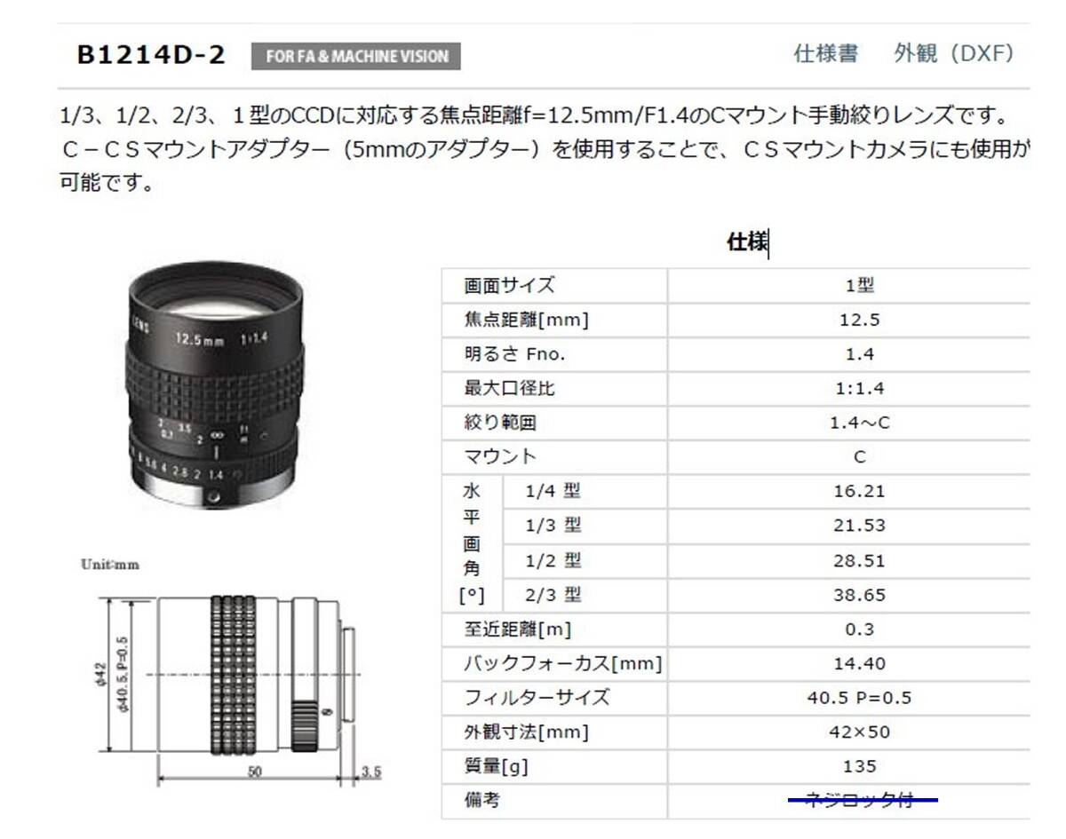 https://www.ricoh-iosd.eu/en/product/FL-BC1214D-VG/VGA-Lenses.htmlをご覧ください。