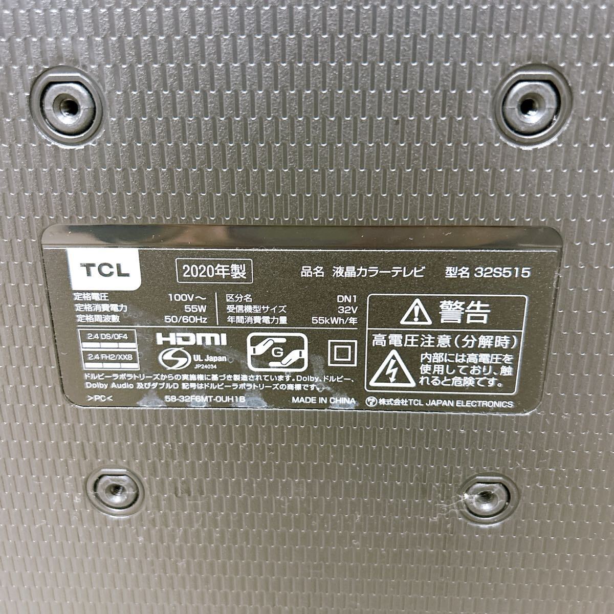 【1円スタート!動作確認済み!】TCL ティーシーエル 液晶カラーテレビ 32S515 32V型 2020年製 スマートテレビ リモコン 付属/OE09198-A