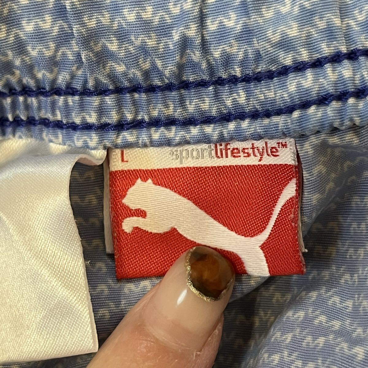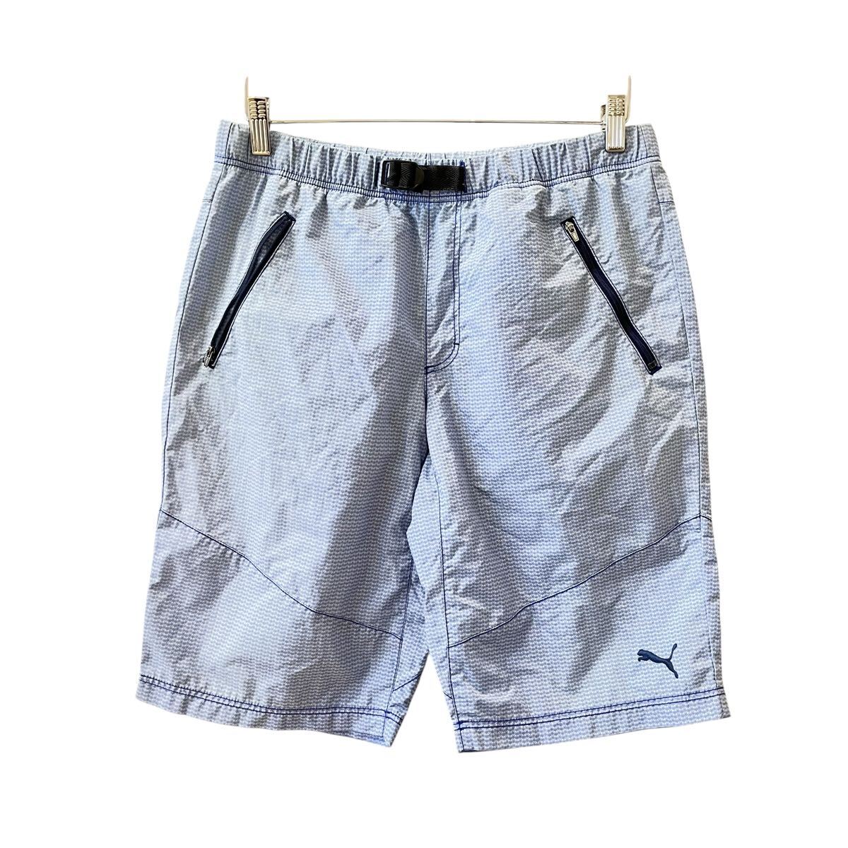Ye2424cc PUMA プーマ ハーフパンツ ショートパンツ サイズL ブルー ナイロン スポーツウェア 水色 ライトブルー 古着 スポーツ