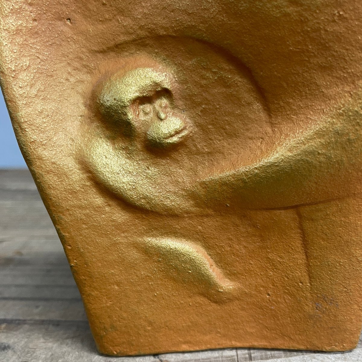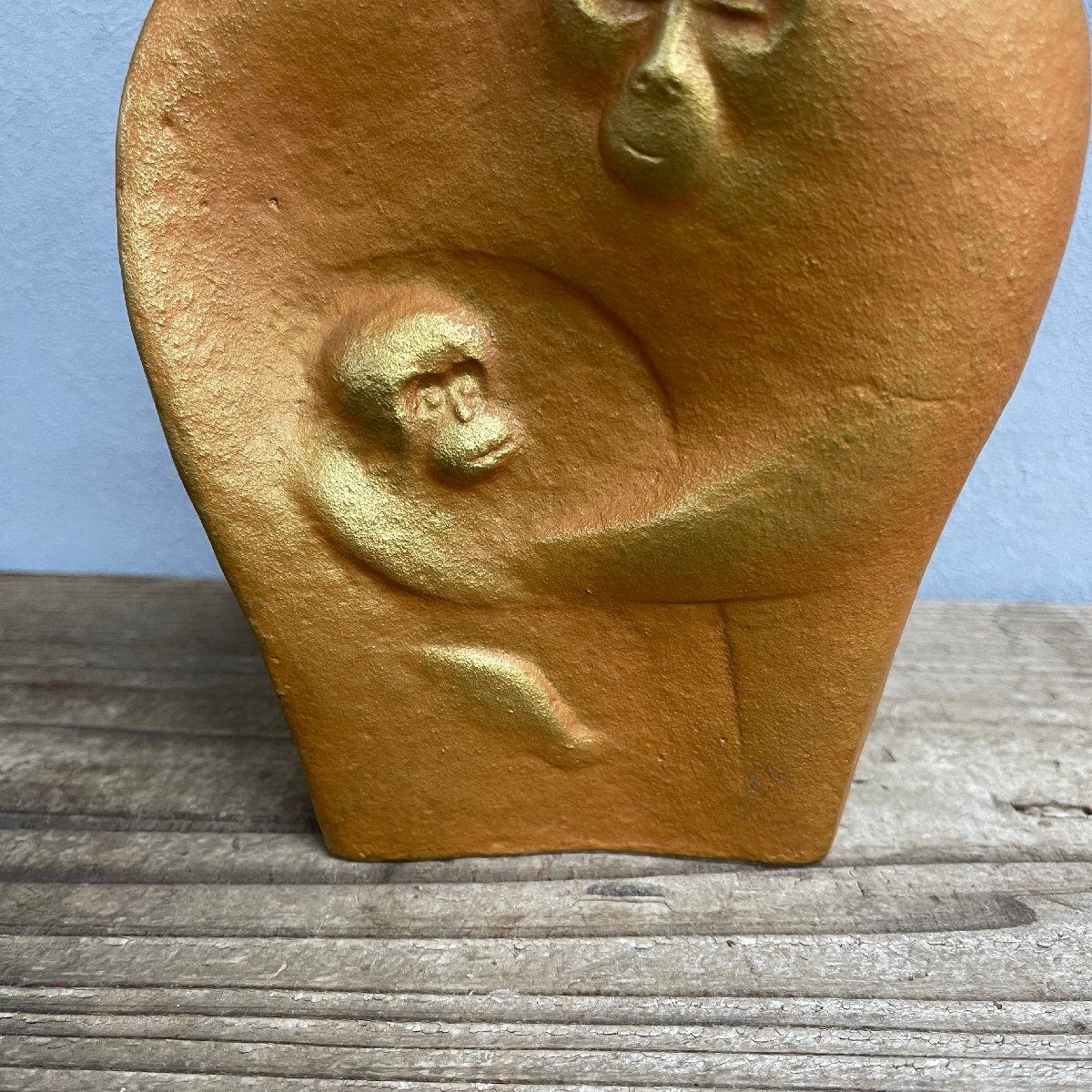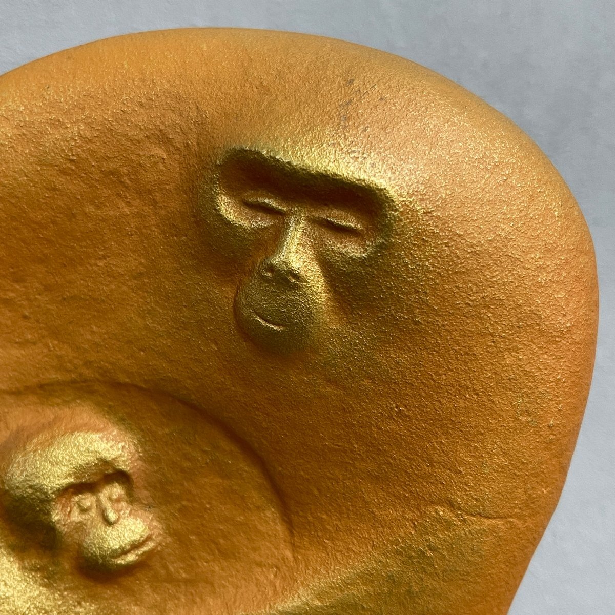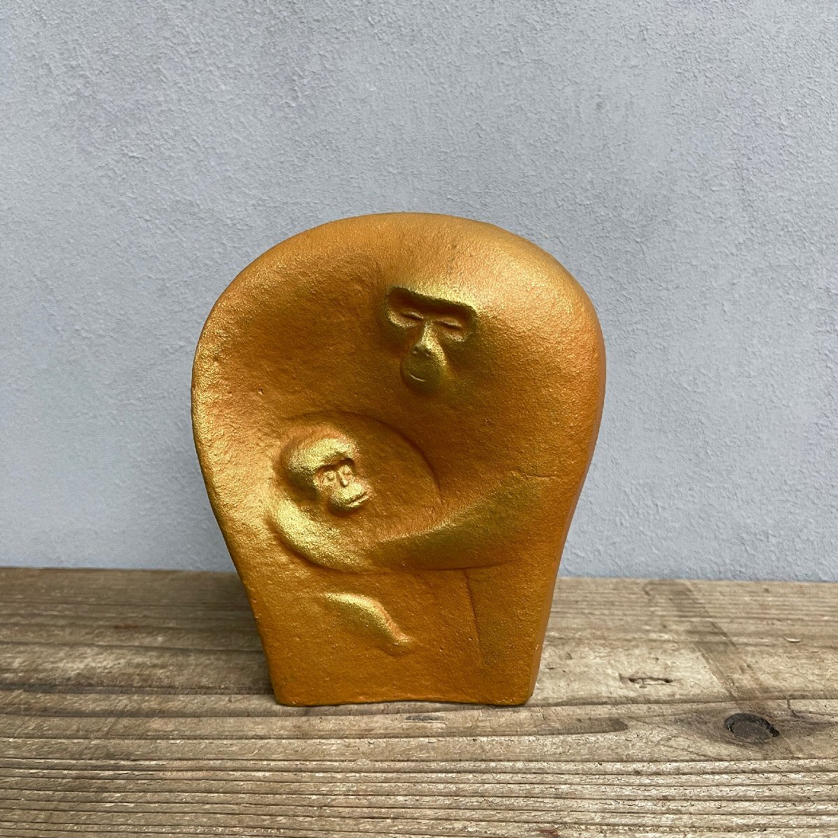 中古 オブジェ 干支 サル 猿 さる 親子 置物 黄金色 優しい表情