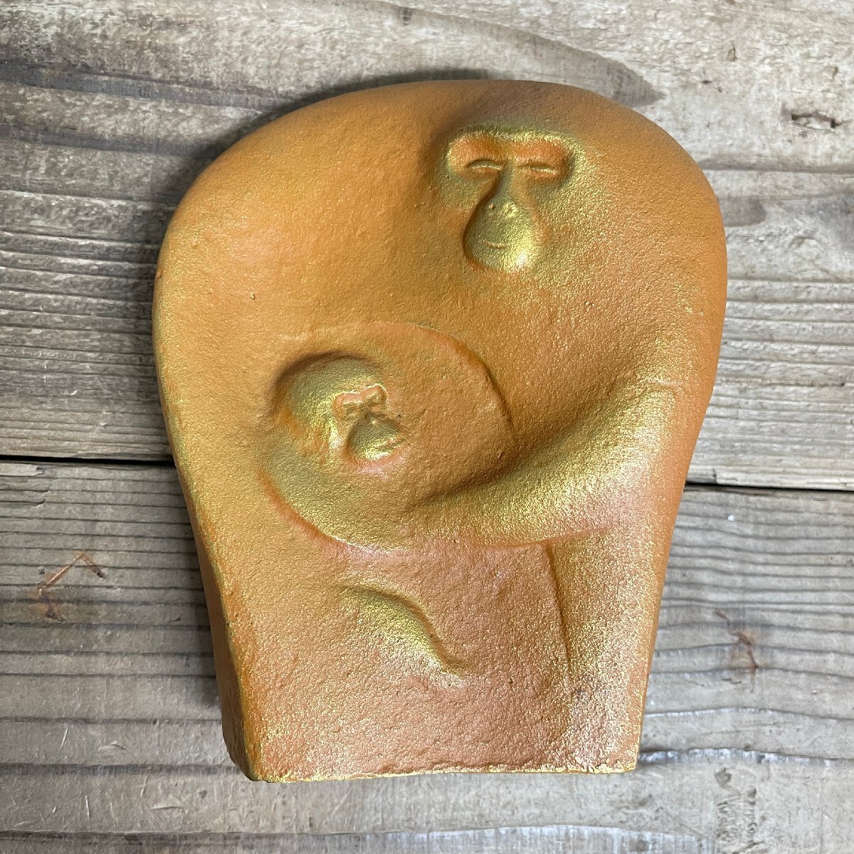 中古 オブジェ 干支 サル 猿 さる 親子 置物 黄金色 優しい表情