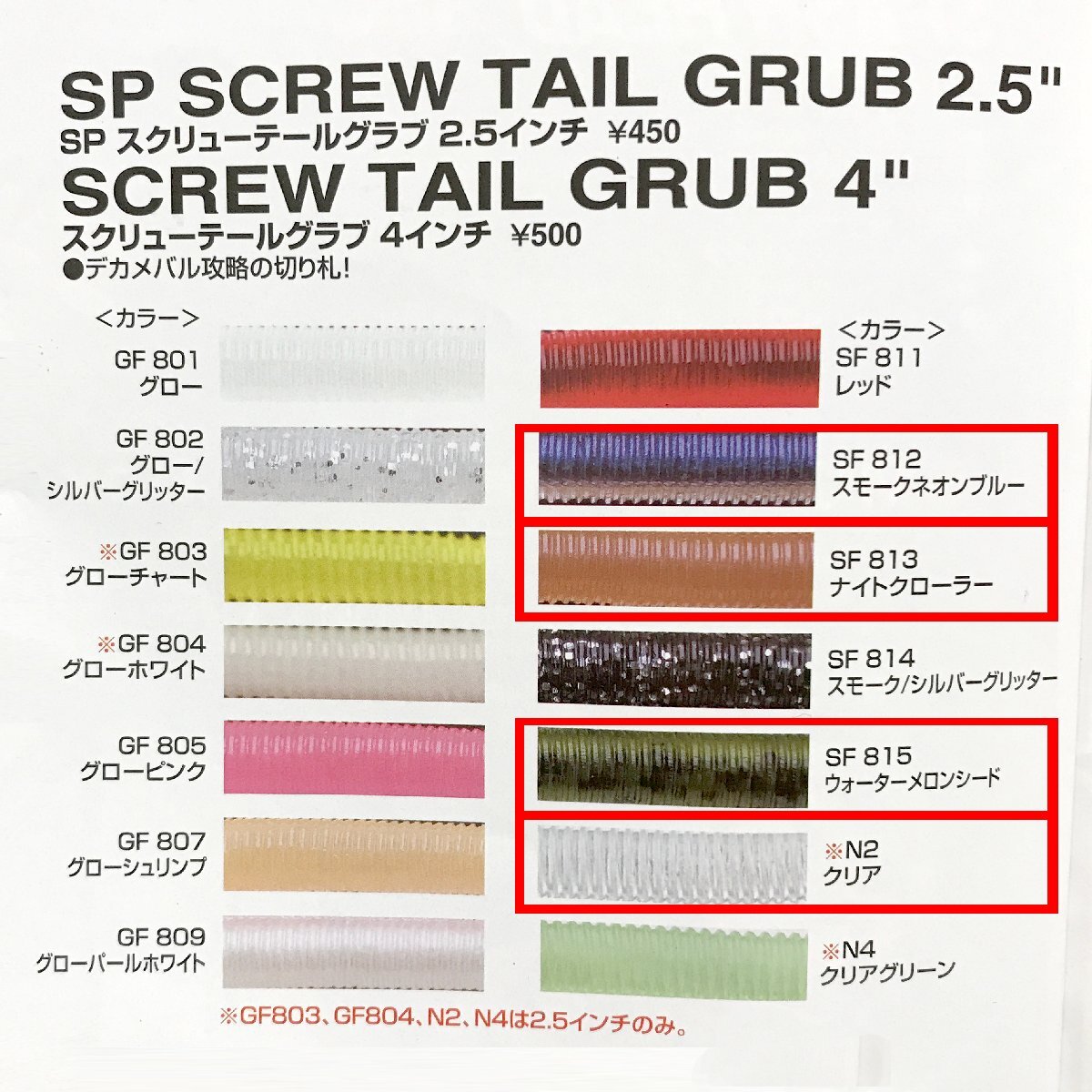 | 商品 | オ森i503 OFT/オフト SPスクリューテールグラブ 2.5インチ 4色セット 計324本セット ナイトクローラー(SF813):108本 クリア(N2):108本 スモークネオンブルー(SF812):54本 ウォーターメロンシード(SF815):54本 ■ワーム/パドルテール ☆新品☆ |
