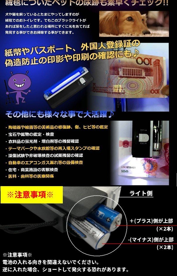 | LEDブラックライトは様々な分野で活躍しています。 |