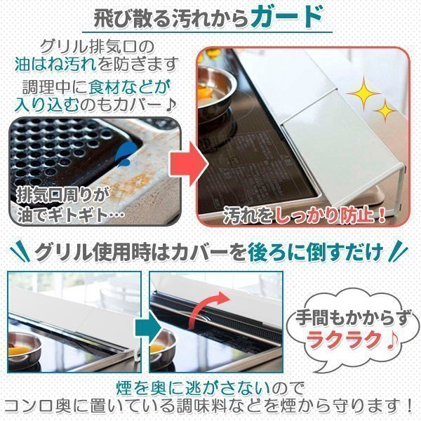 伸縮排気口カバー 60cm 75cm 油はねカバー おしゃれ コンロ グリル カバー 排気口 汚れ防止 油汚れ ホワイト 白