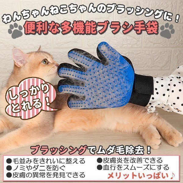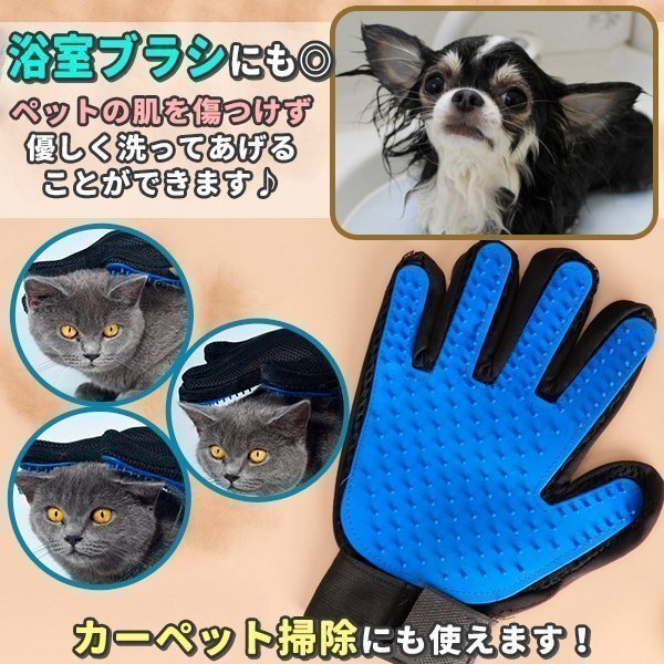 グルーミング グローブ シリコン グローブ ドッグ キャット 用品 犬 猫 両手 抜け毛  ブルー