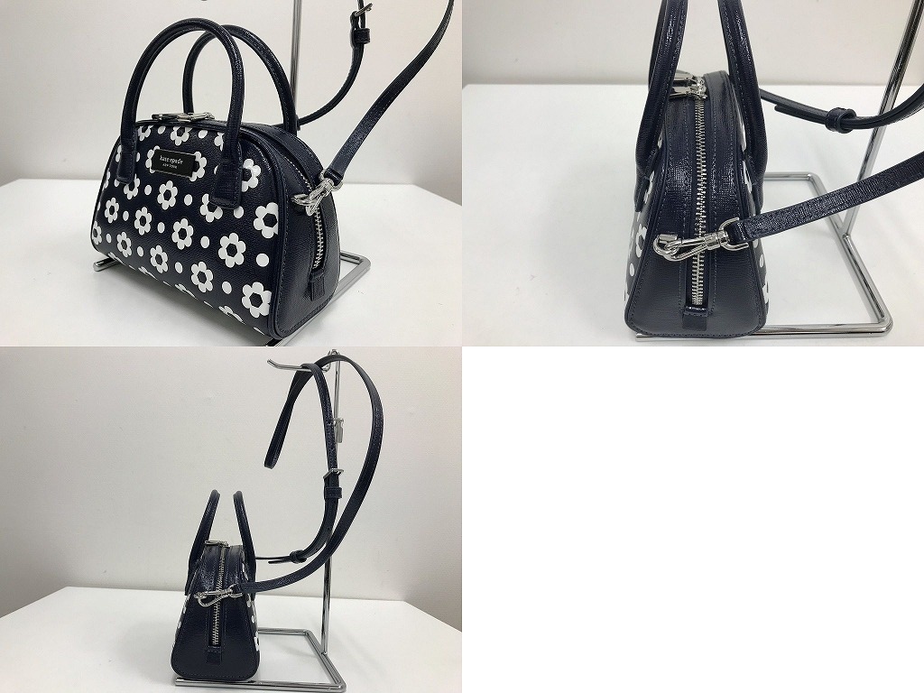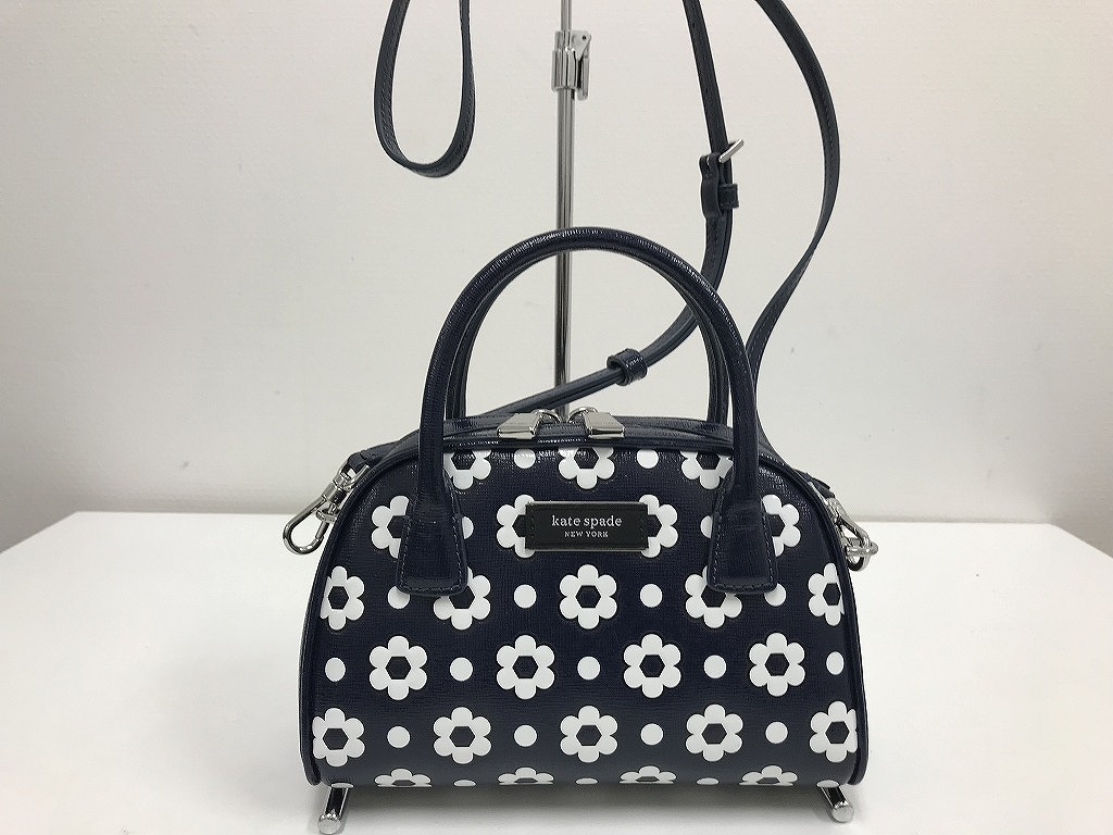 商品説明kate spade 超極美品 激カワで魅せる!デイジー ドット ミニ ダッフル 2WAY 小さめハンドバッグ ショルダー でございます。  ブランドのヘリテージとして多くの方々に愛されてきた人気作を愛らしいサイズに再構築した「サム」シリーズのアイコン ミニ ダッフルバッグ。  艶めきが洗練のルックをもたらすサフィーノレザーを用い、クロスボディストラップを付属しています。  きれいめなスタイルはもちろん、デニムなどのカジュアルな着こなしにもマッチします。