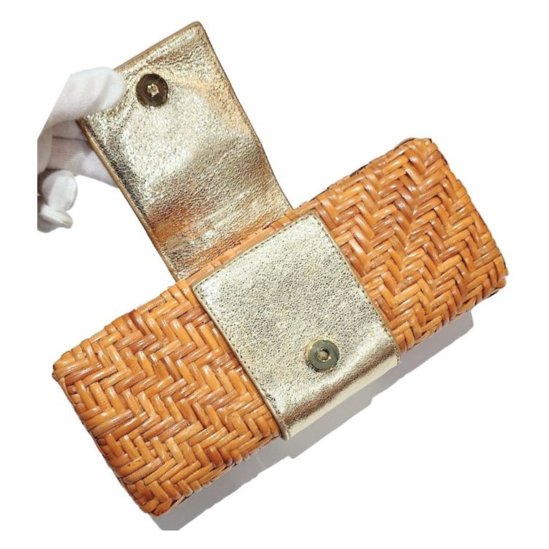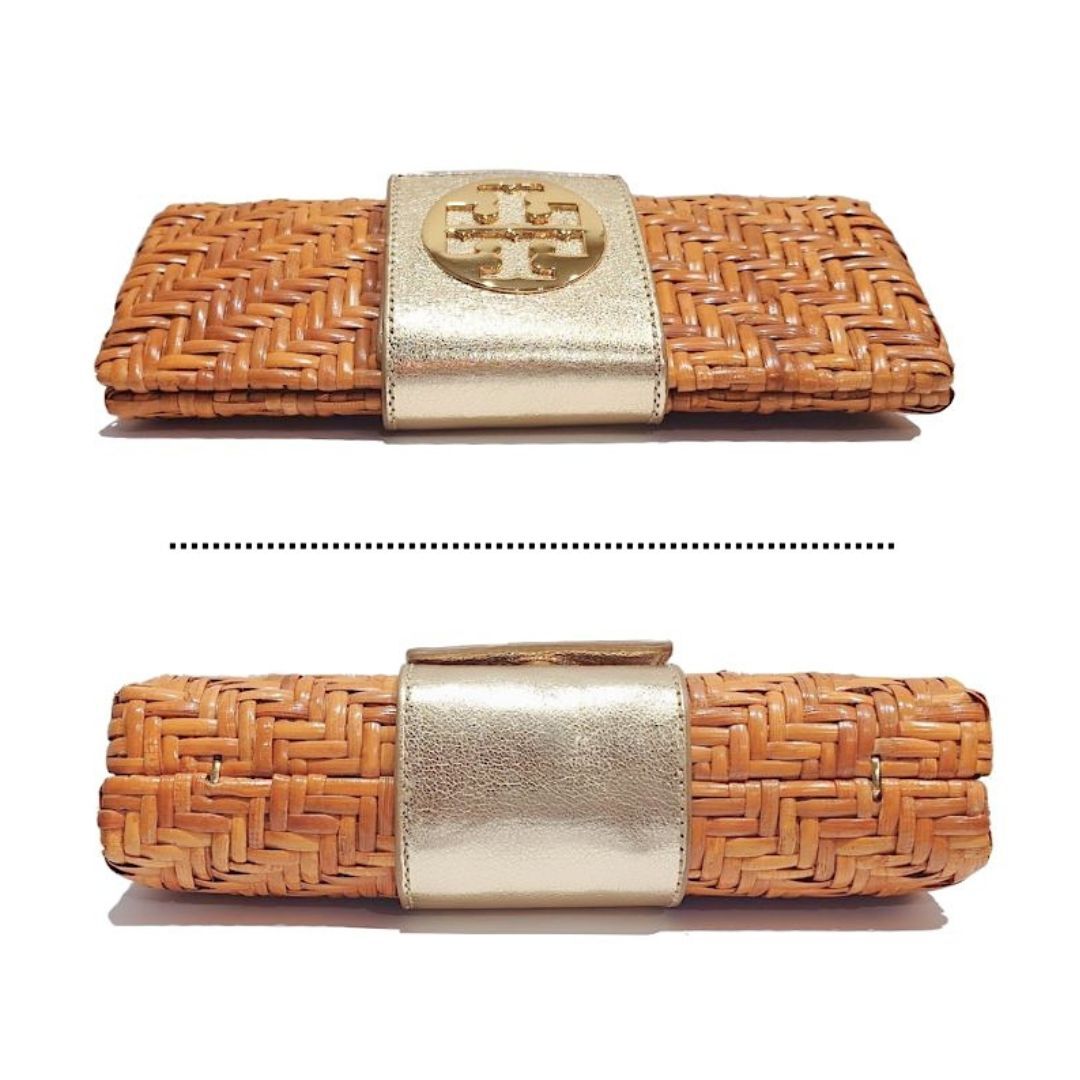 【鑑定済】TORY BURCH トリーバーチ ラタン クラッチ バッグ カゴバッグ ナチュラル シャンパン ゴールド 20109086【送料無料】