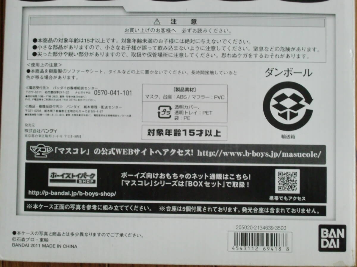 バンダイの マスコレプレミアム『仮面ライダーマスクコレクション「ショッカーライダー№2to№6」セット』 です。 ショッカーライダー2号から6号までの5種セットです。 コレクション整理の為、お譲りいたします。 箱のみ開封済みの未使用新品ですが、お写真で現状をご理解いただける方のみ入札いただき、NC・NRでお願いいたします。 尚、迅速な対応を心がけてはおりますが、仕事の都合で、お支払い終了後、発送まで若干のお時間を頂戴する場合がありますのでご了承下さい。 又、深夜と平日の昼間は連絡が出来ない可能性がありますので、併せてご了承ください。 他にも「おもちゃホビー」を色々出品しておりますので、よろしければご覧下さい。