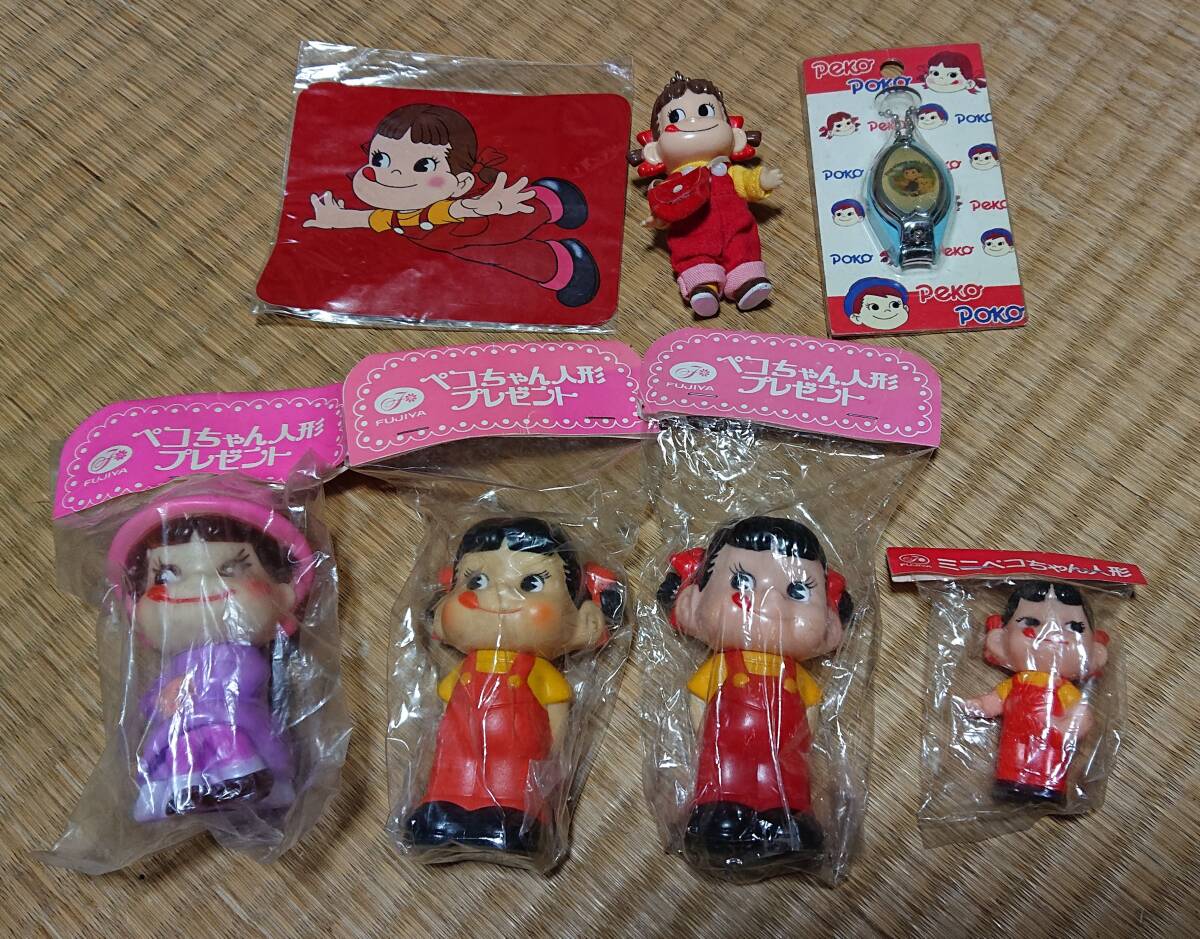 ソフビ4点、爪切り、ミニ人形、ステッカーです。