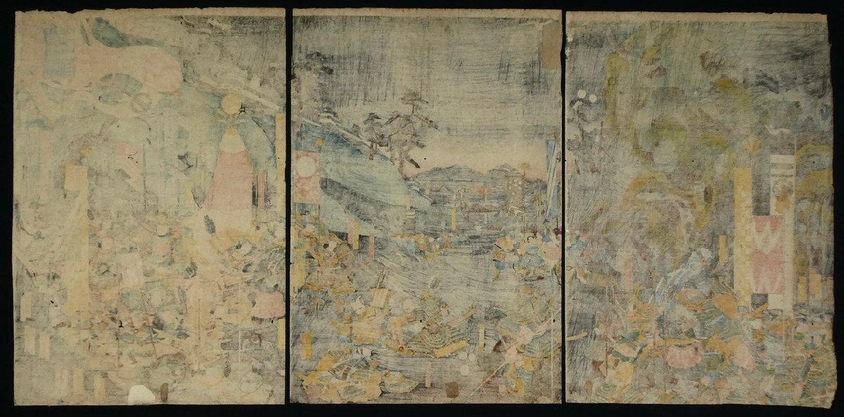 ◆三代歌川豊国 新田義貞鎌倉征伐軍配之図 三枚