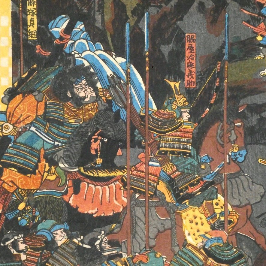 311 三代歌川豊国 新田義貞鎌倉征伐軍配之図 三枚◆武者絵◆版画◆浮世絵◆真作