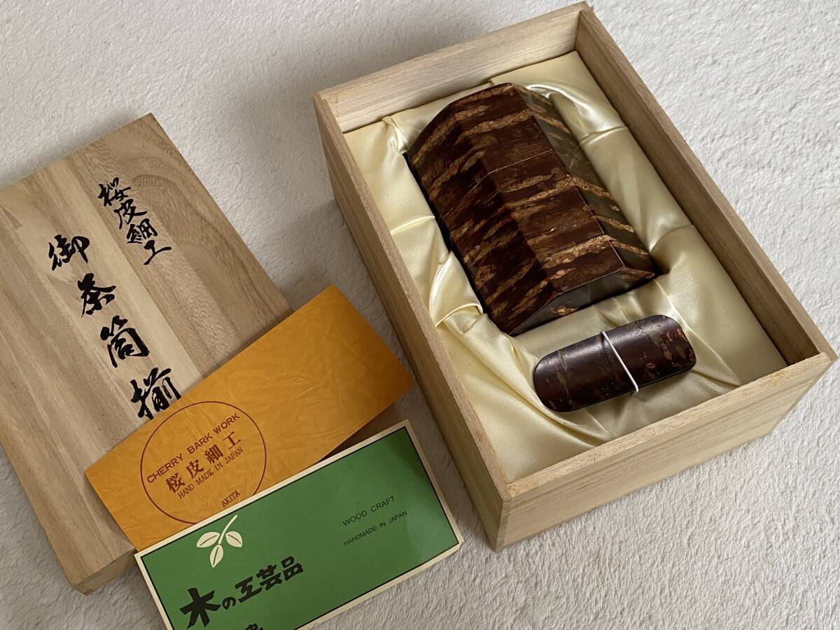 新品【桜皮細工/くさ忠】 茶筒揃 [HANDMADE IN JAPAN] 伝統工芸”桜皮細工”の逸品 茶筒と茶さじのセットです 茶筒は中まで全て桜皮を使った作りです 贈答品につき茶筒の底面に 「寿 個人名」の記名がありますこと ご了承ください ★サイズ (茶筒)直径:約8.3cm 高さ(蓋含む):約12cm (茶さじ)約3×7.5cm |