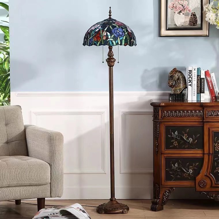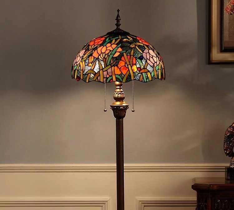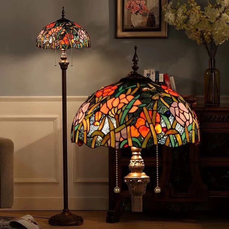 高級感溢れる★ヴィンテージ ステンドランプ ステンドグラス アン 花柄 レトロな雰囲気がおしゃれ 照明 ティファニー技法 フロアランプ