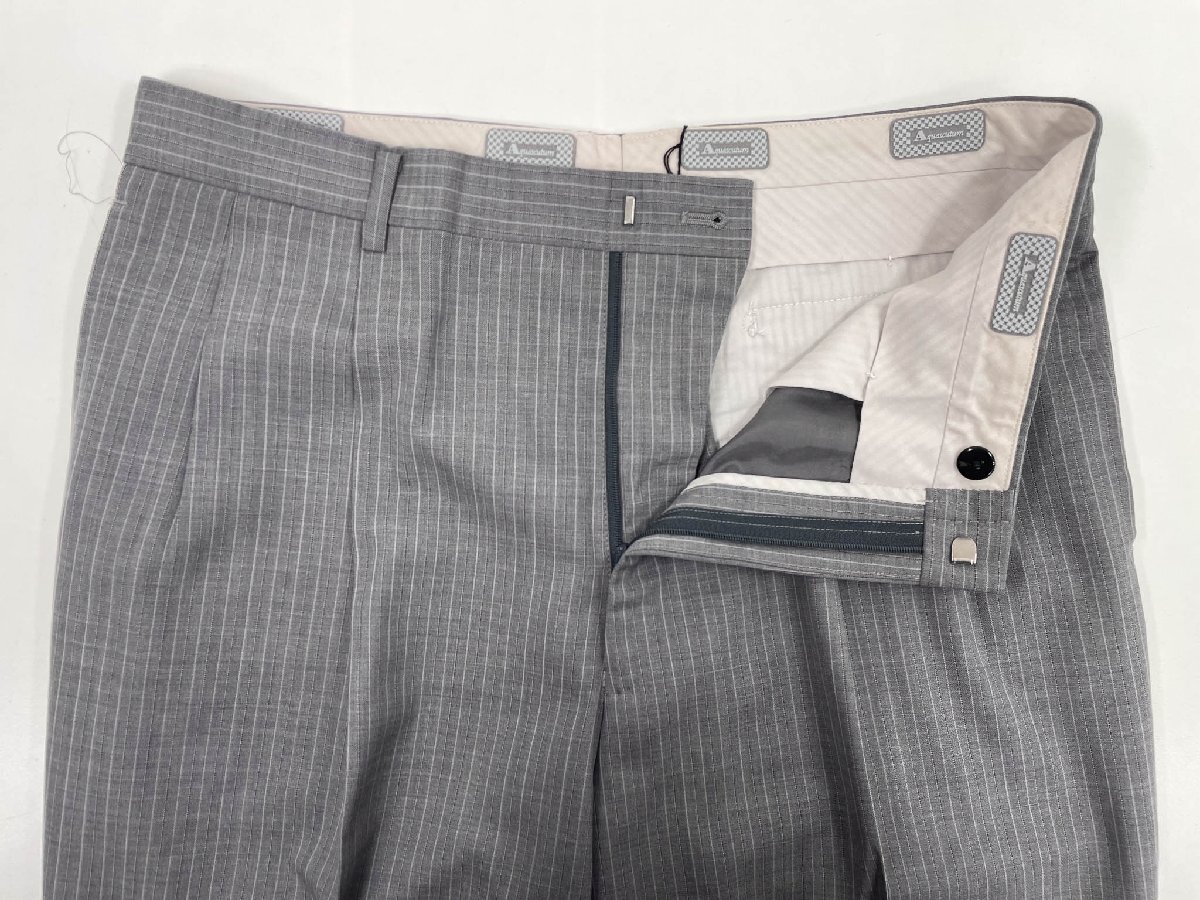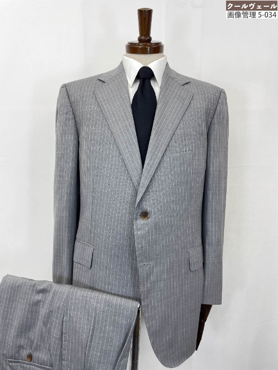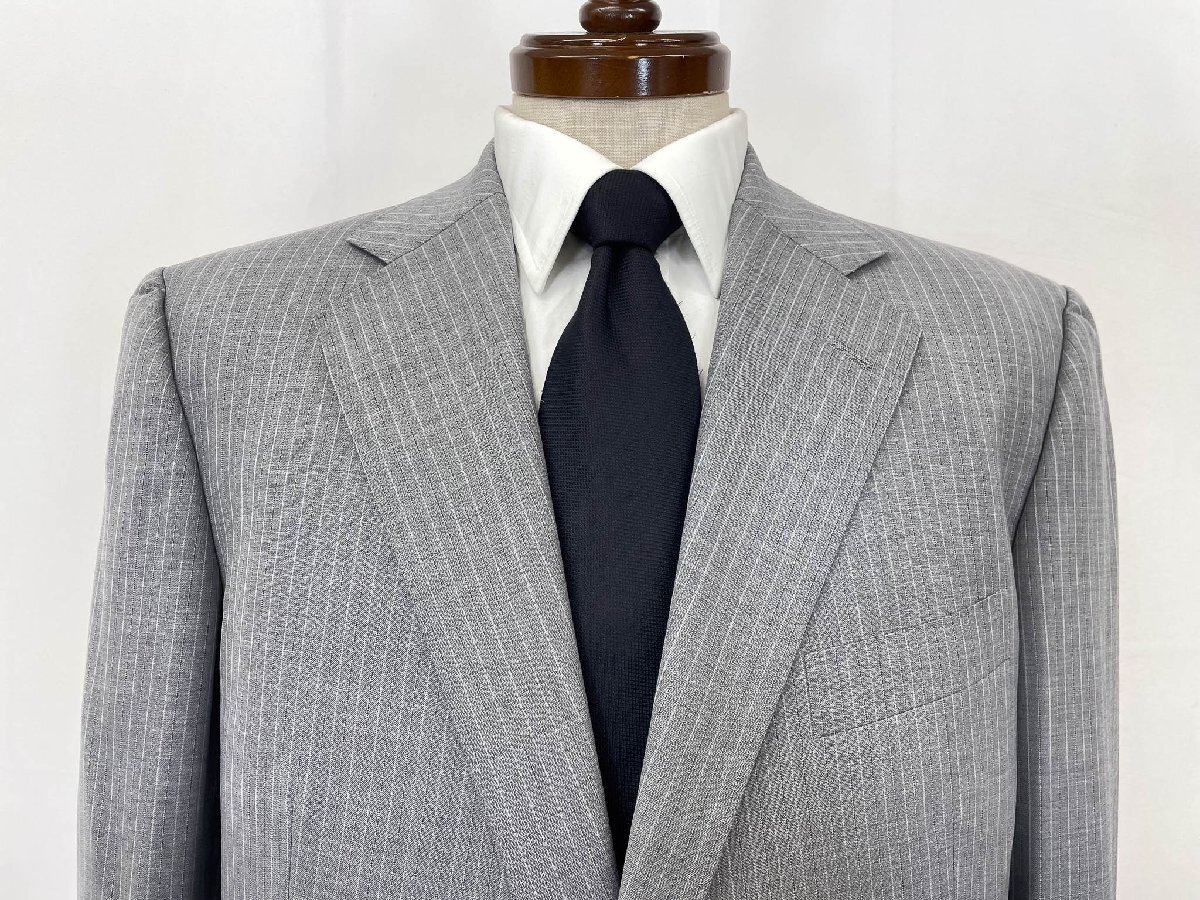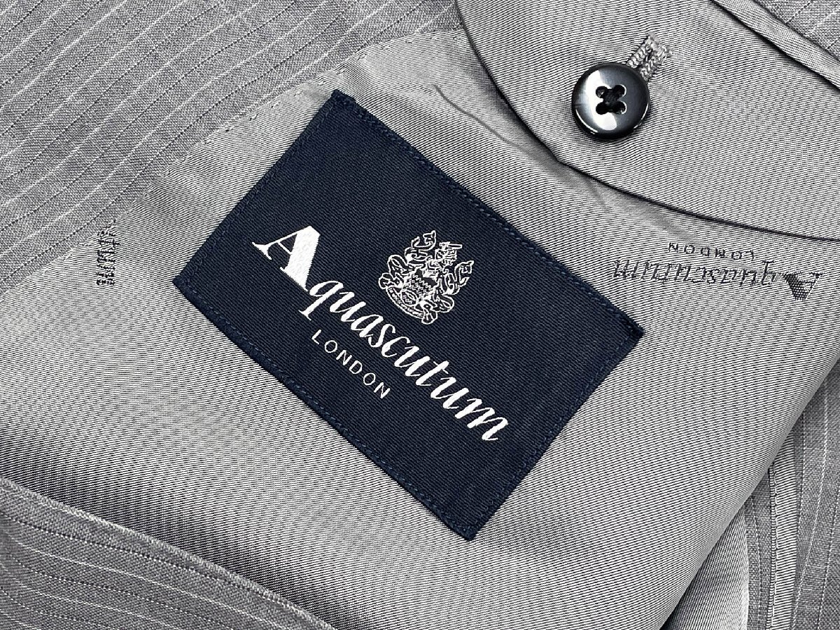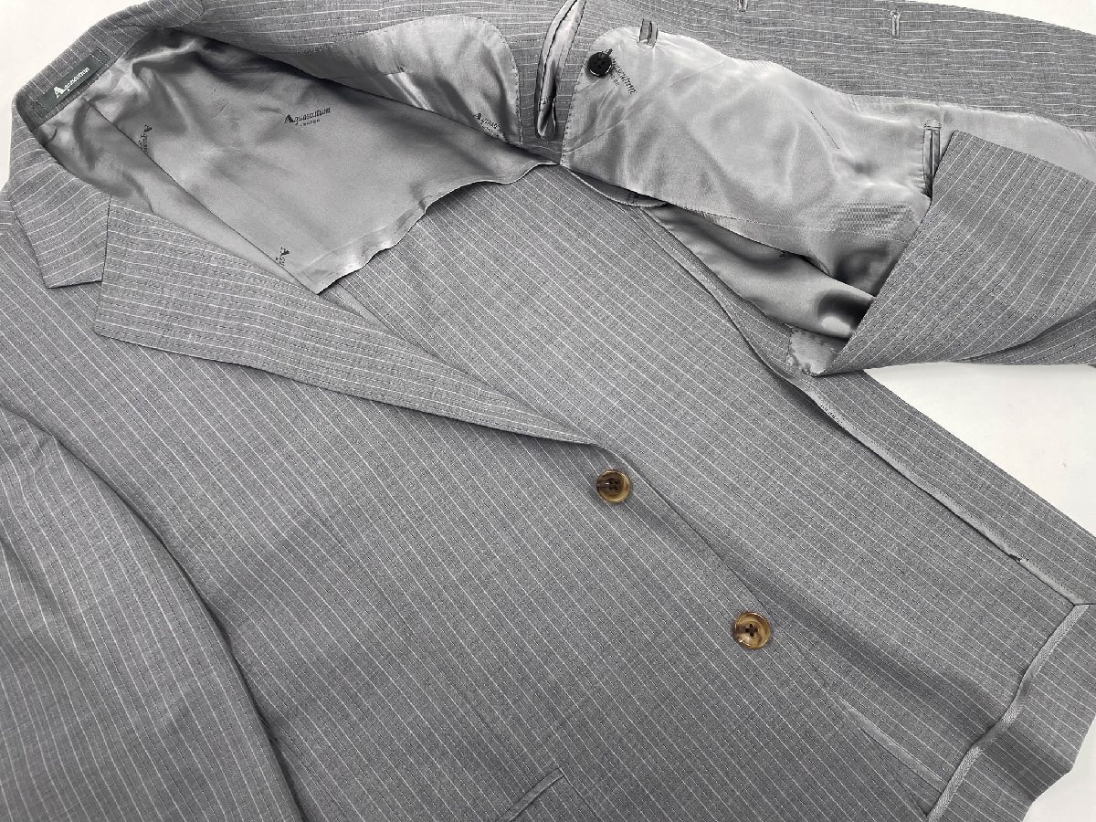 美品【Aquascutum アクアスキュータム】 シングル2ボタンスーツ (メンズ) size100AB7 ライトグレー系 ストライプ柄 ◇33RMS2786◇