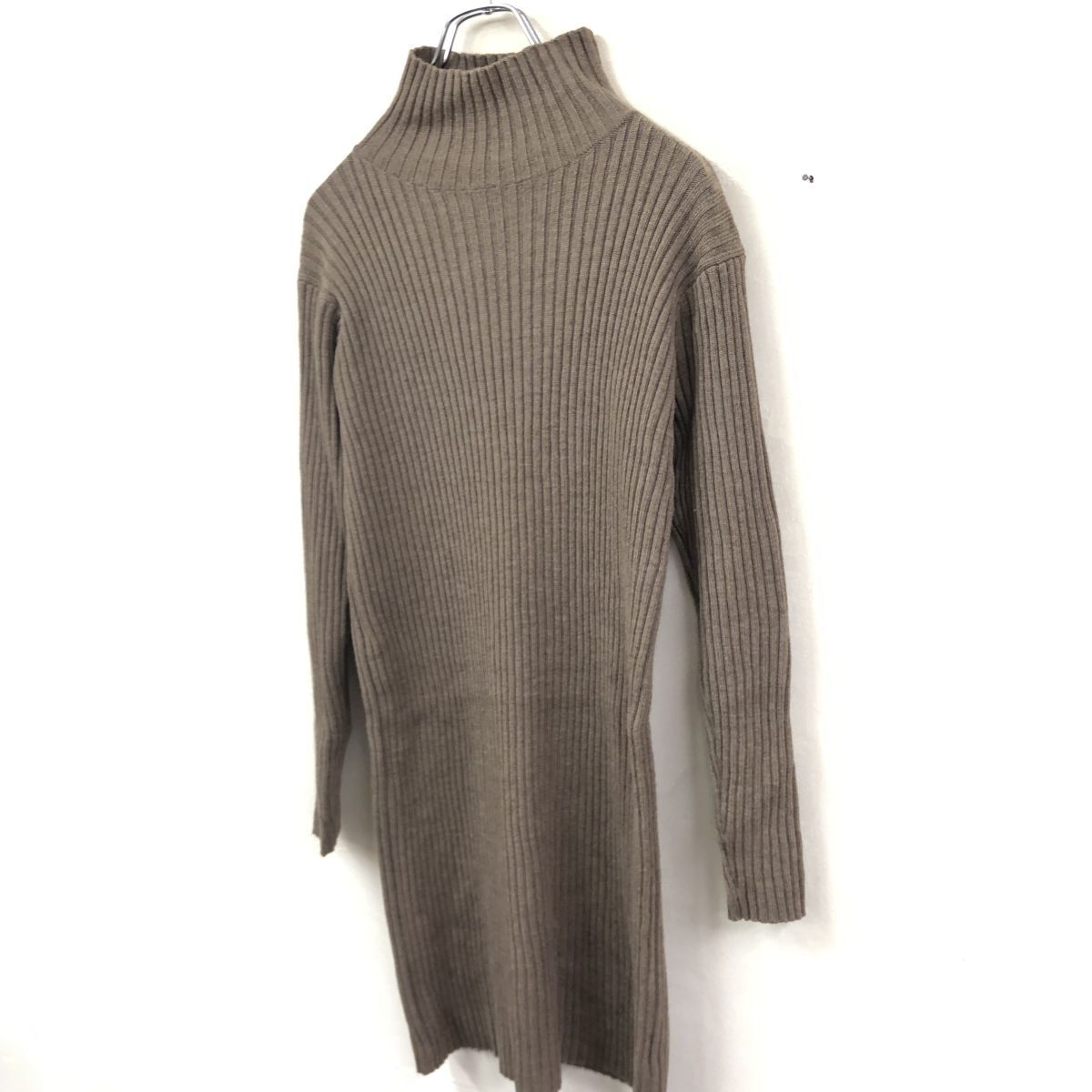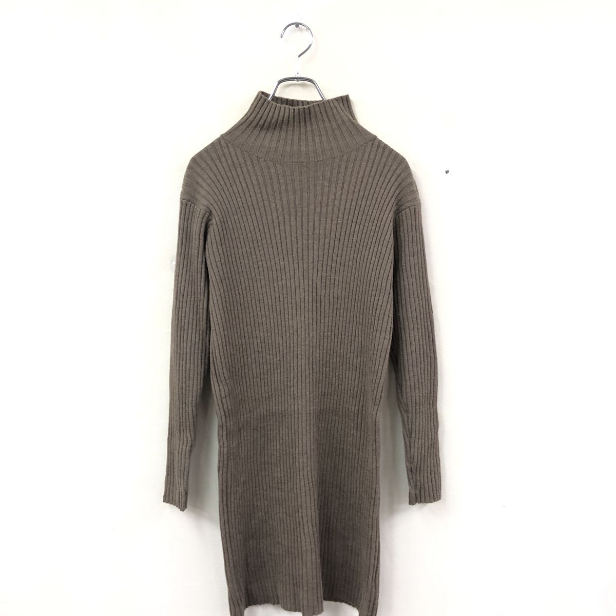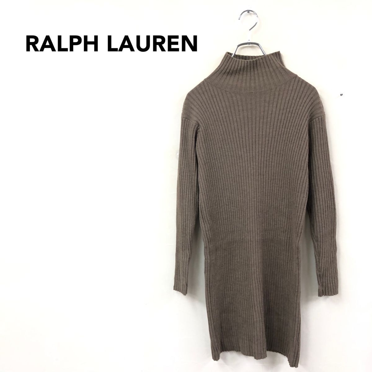 2O3295-O◆RALPH LAUREN ラルフローレン 長袖ニットトップス ロング丈 タートルネック 無地◆sizeM ブラウン 毛
